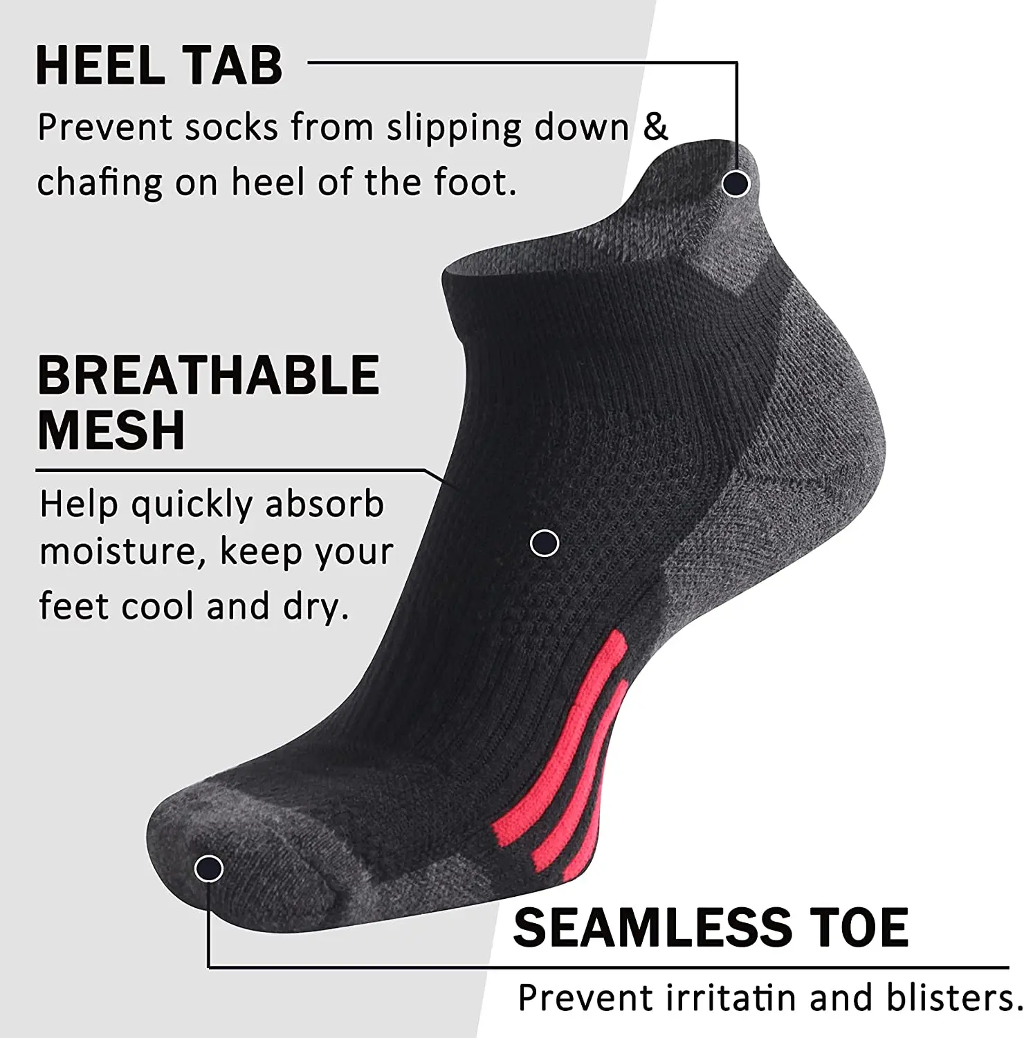 -Улучшенная смесь хлопка и полиэстера, женские носки для тренировки по щиколотку, изготовленные из 80% хлопка премиум класса, ультрамягкие и удобные. Легкие велосипедные носки с лучшей проницаемостью и влагоотводящей производительностью сохранят Ваши ноги прохладными и сухими все время, смесь полиэстера обеспечивает плотное прилегание и сохранение формы даже после повторной стирки.