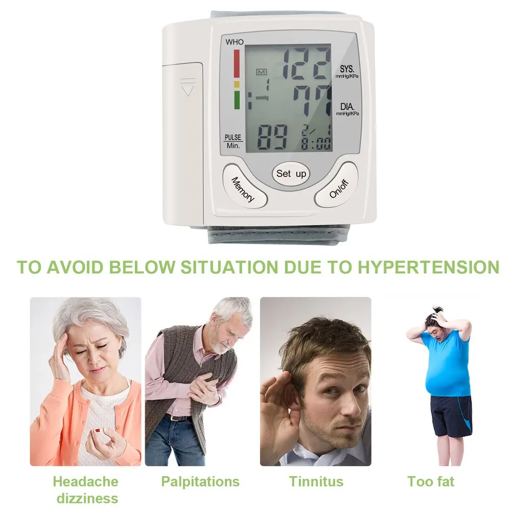 Сфигмоманометр Автоматический цифровой ЖК-дисплей монитор запястья сердечного ритма и пульсометр измерение здоровья пожилых людей