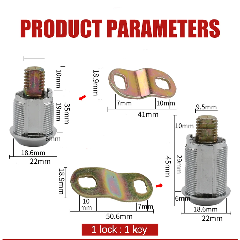 Аркадные дверные замки, размер отверстия 19 мм, общая длина 35 мм.