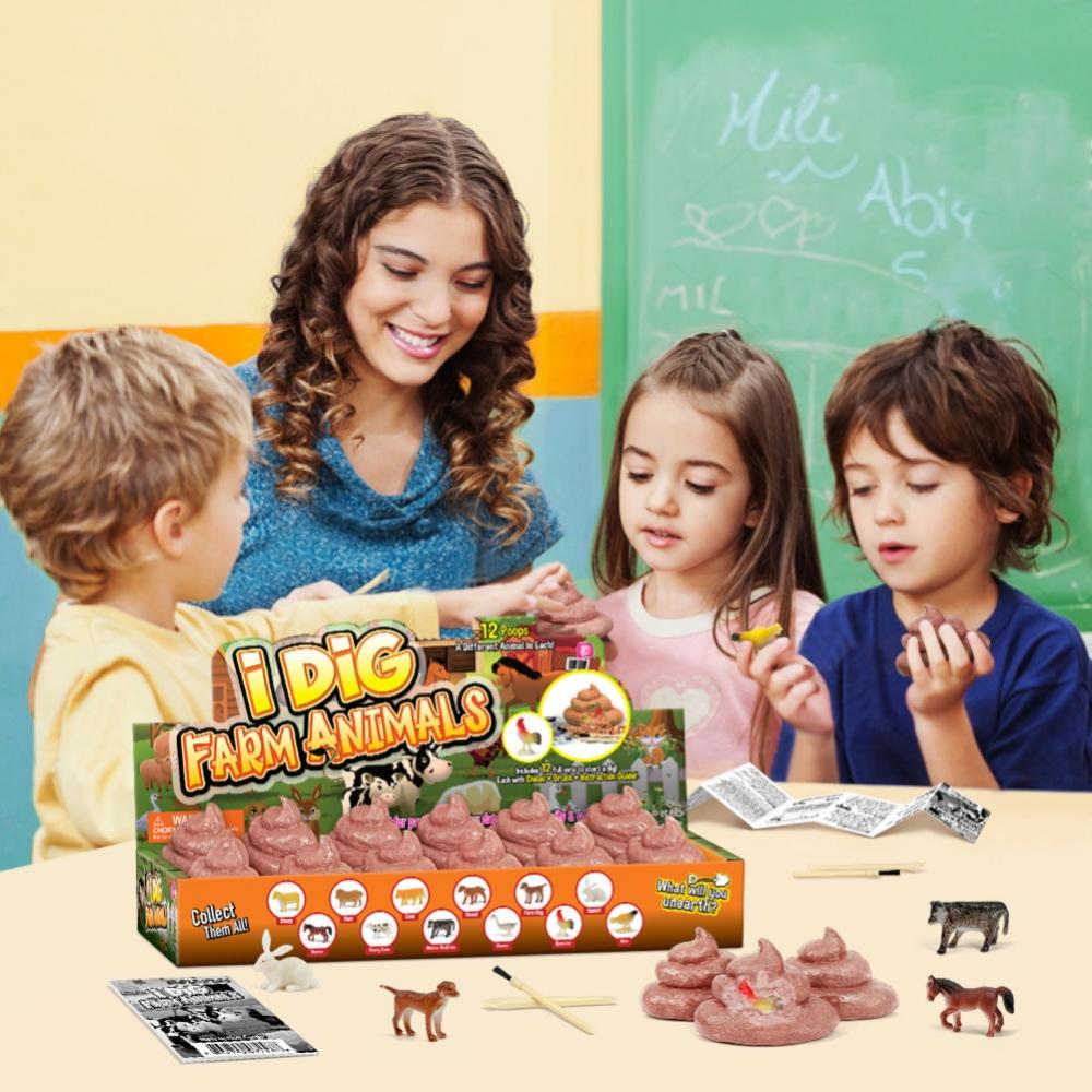 12 шт. в упаковке, Детская экскрементов в форме сельскохозяйственных животных археологии копать набор "раскопки" игрушка-головоломка