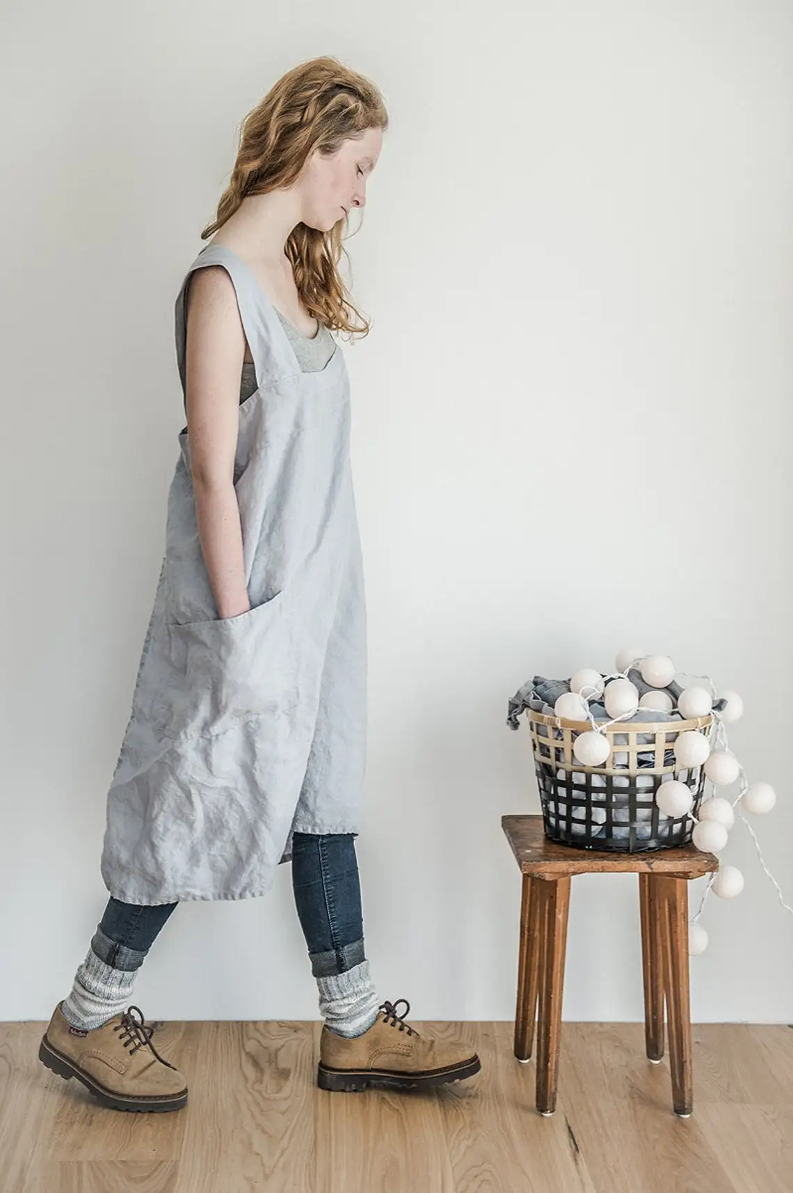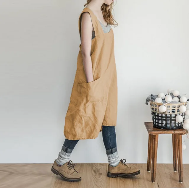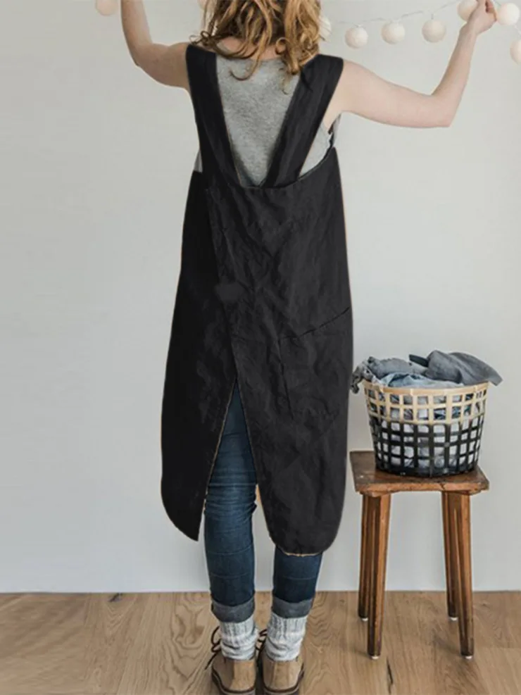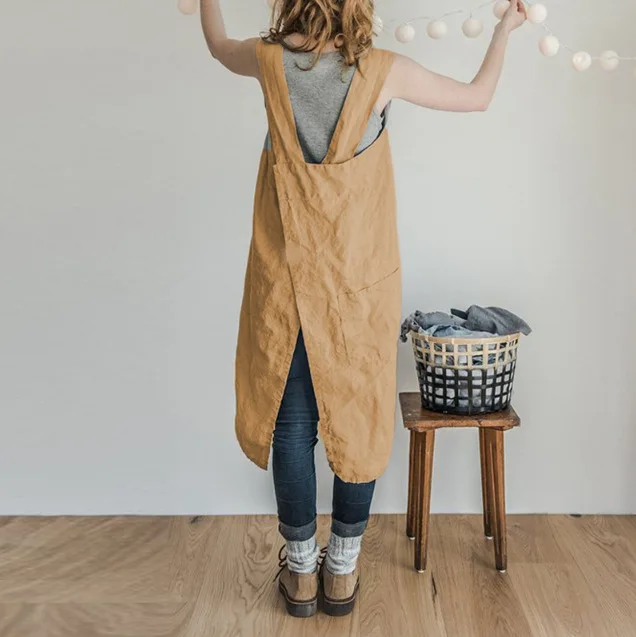 • Моющийся, мягкий, квадратный Льняной Фартук с перекрестной спинкой (фартук в японском стиле) изготовлен из 100% натурального льна.