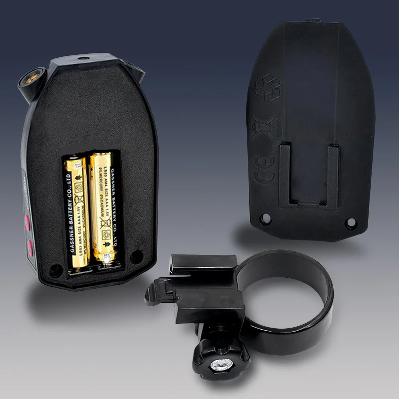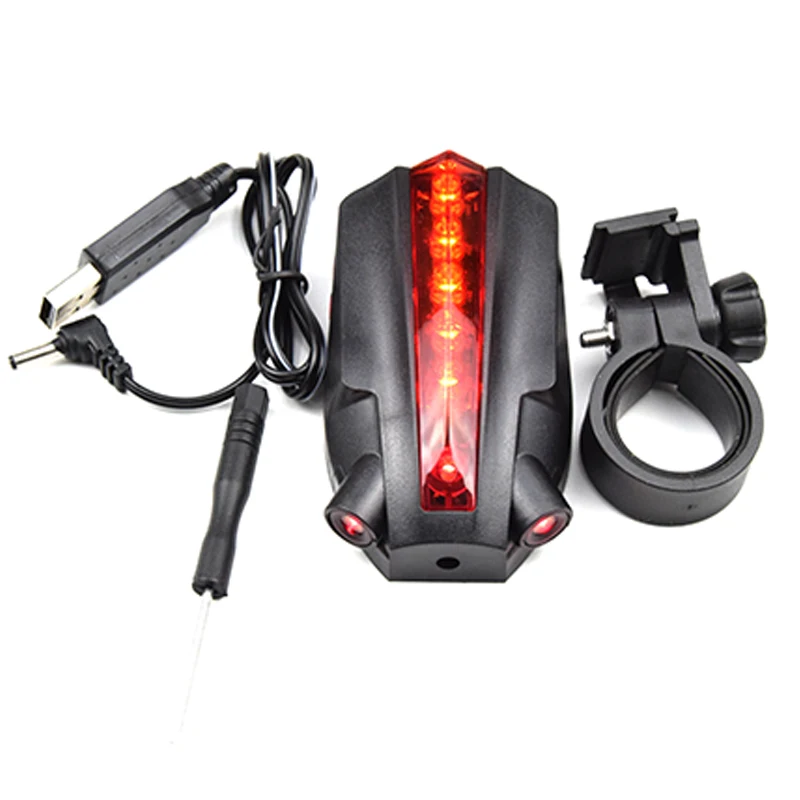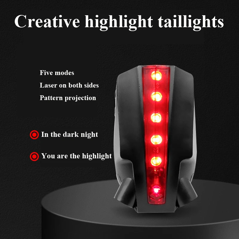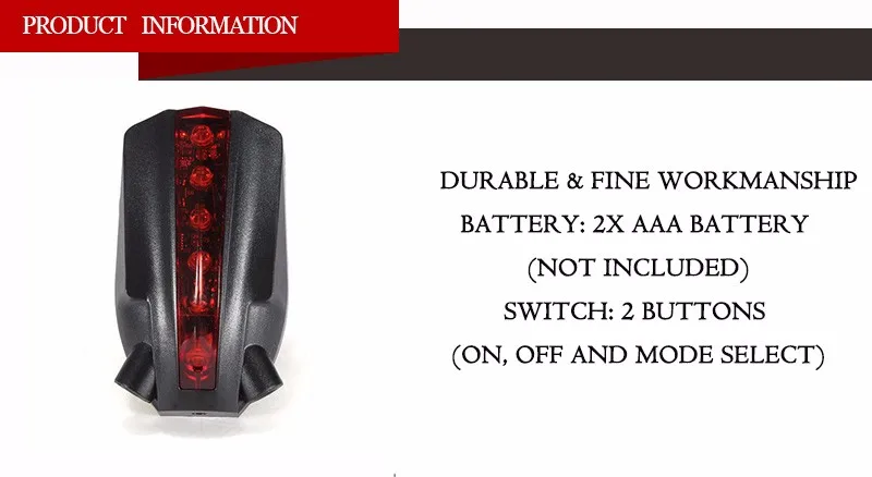 ①With 5 суперяркий красный светодиодный индикаторов и 2 лазерных луча дизайн позволяют легко заметить фонарь в тёмное время суток