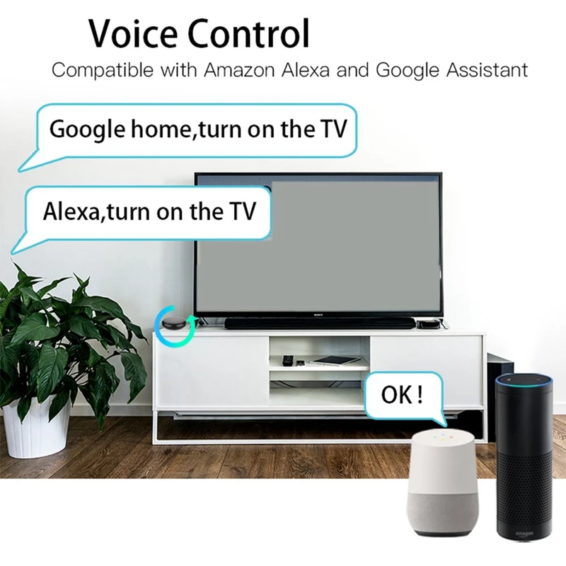 3. Голосовое управление без рук: Alexa, установите A/C до 77 градусов по Фаренгейту. Голосовая команда может активировать SMART IR control ler для удаленного управления большинством инфракрасных устройств управления. Такие как A/C, FAN ,TV, DVD, STB, TV BOX и т. Д.