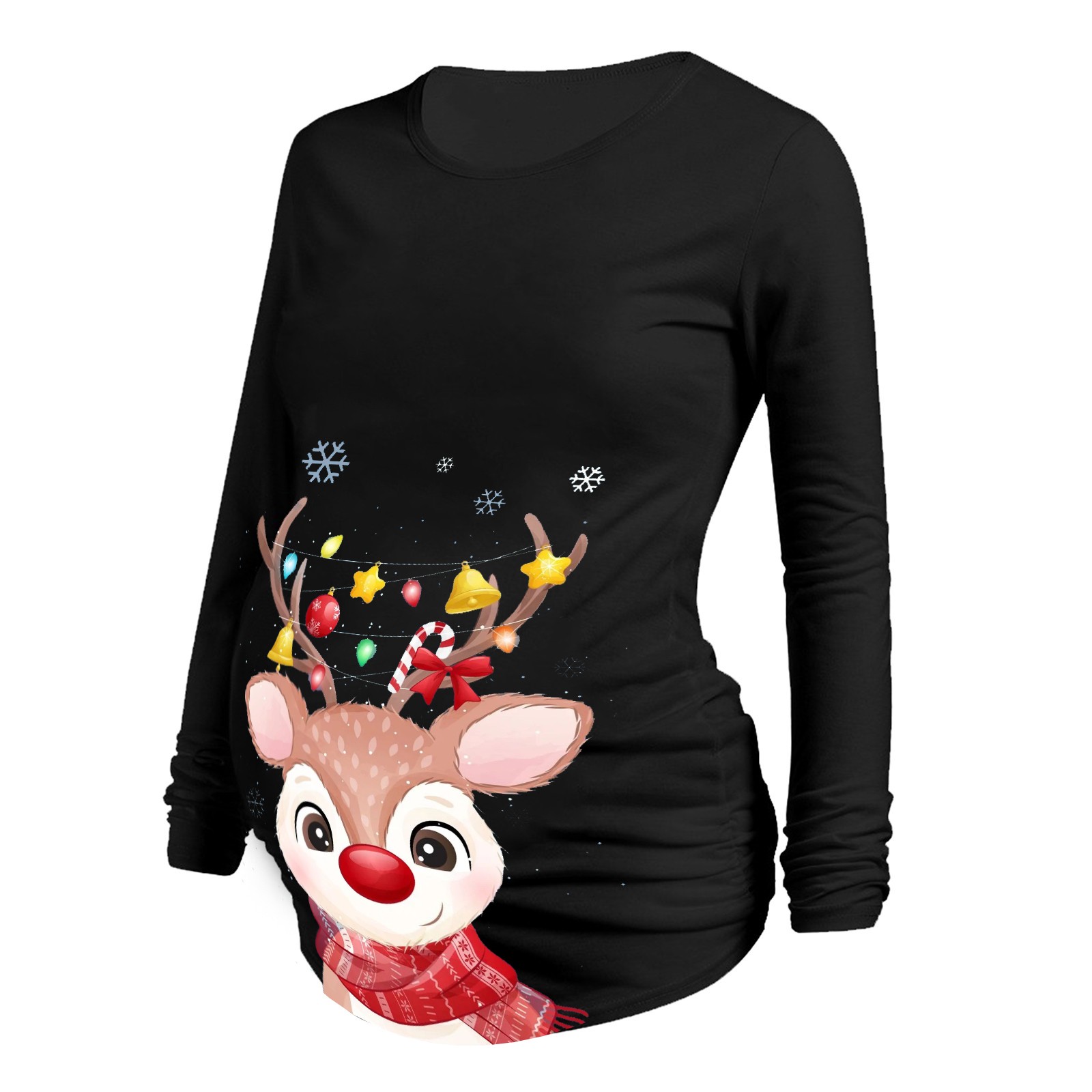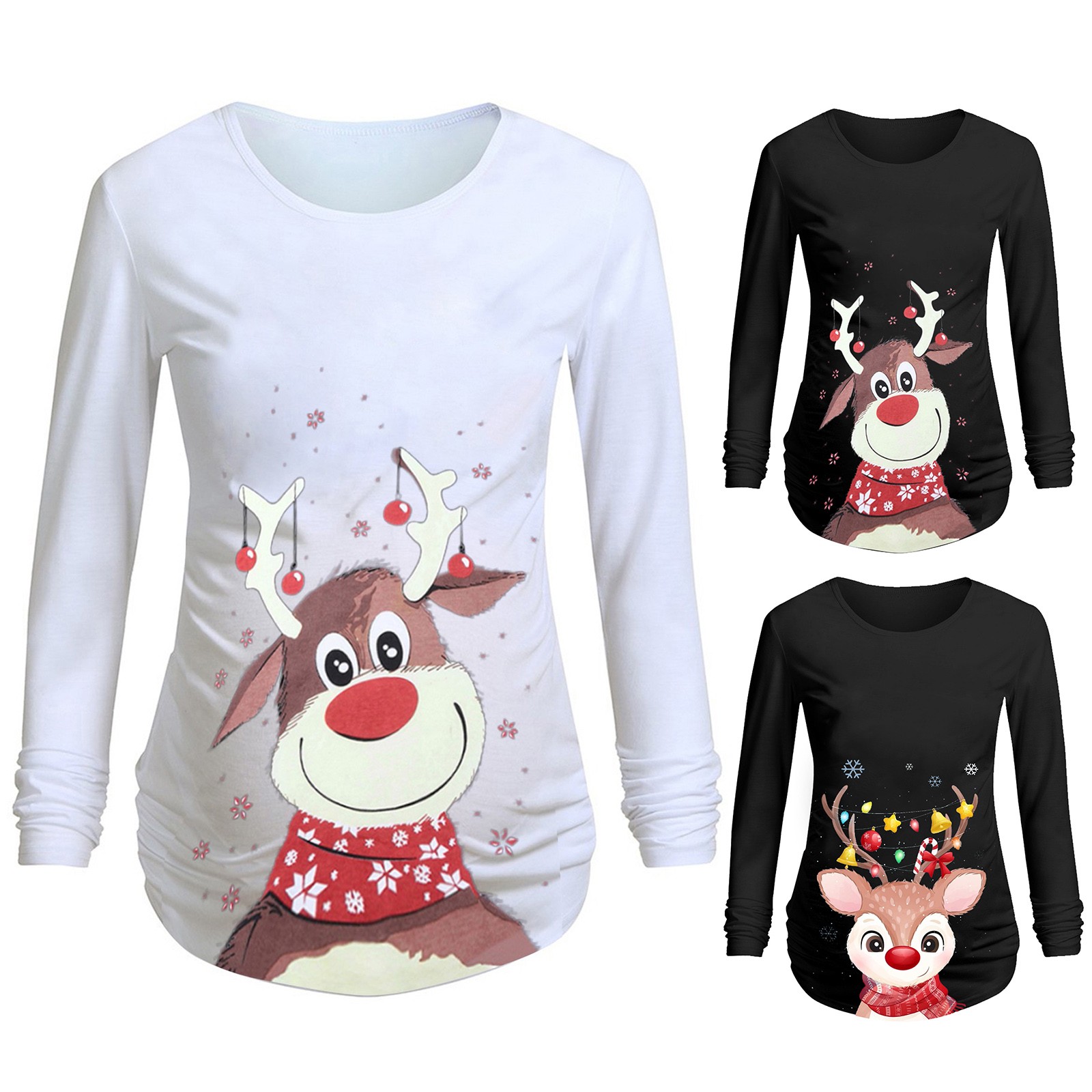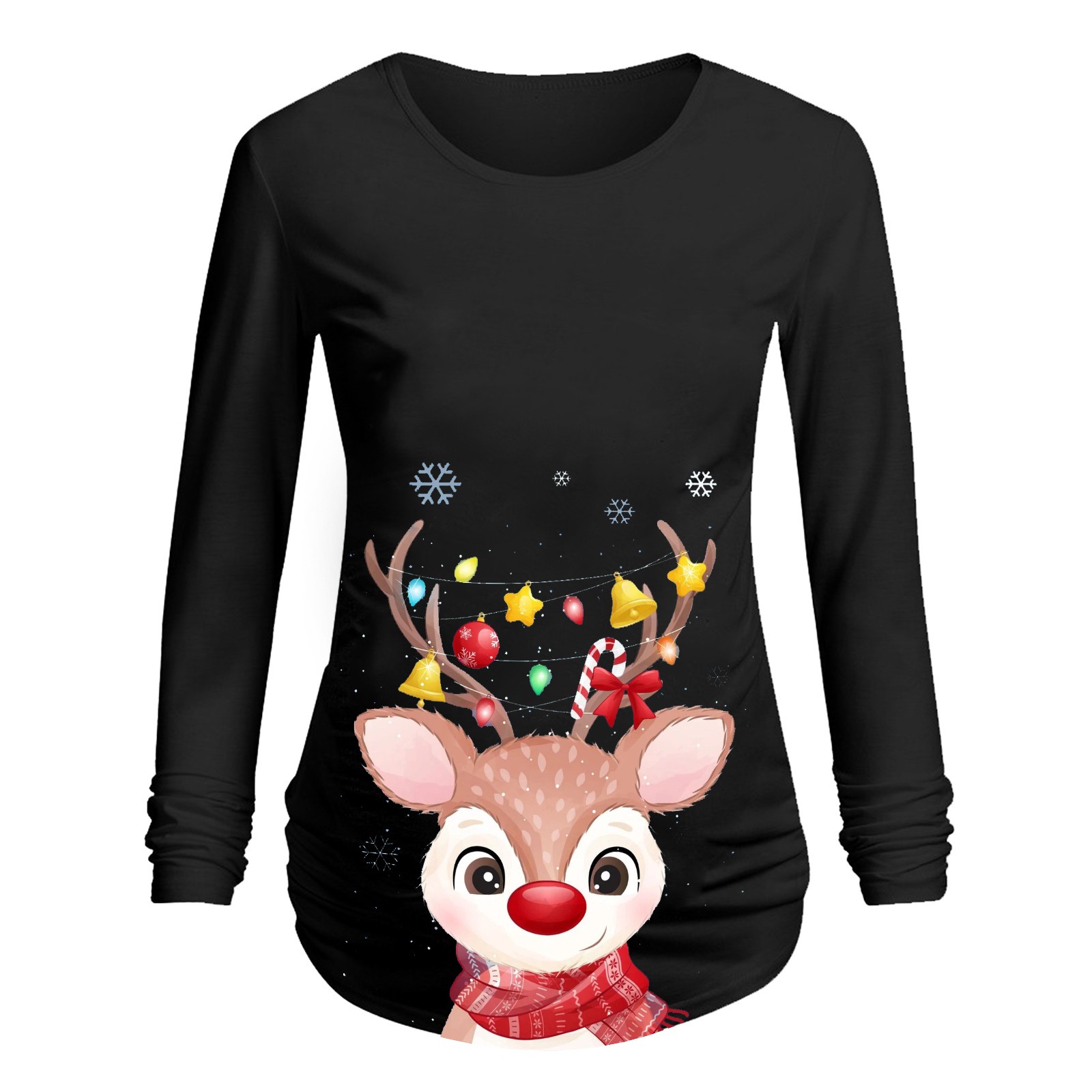 Рождественская футболка с длинными рукавами и рисунком оленя для беременных; Топы; Блузка для беременных