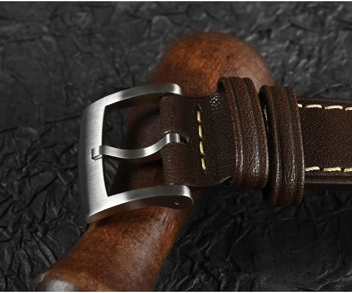 Прочный кожаный ремешок с пряжкой из нержавеющей стали 316L
