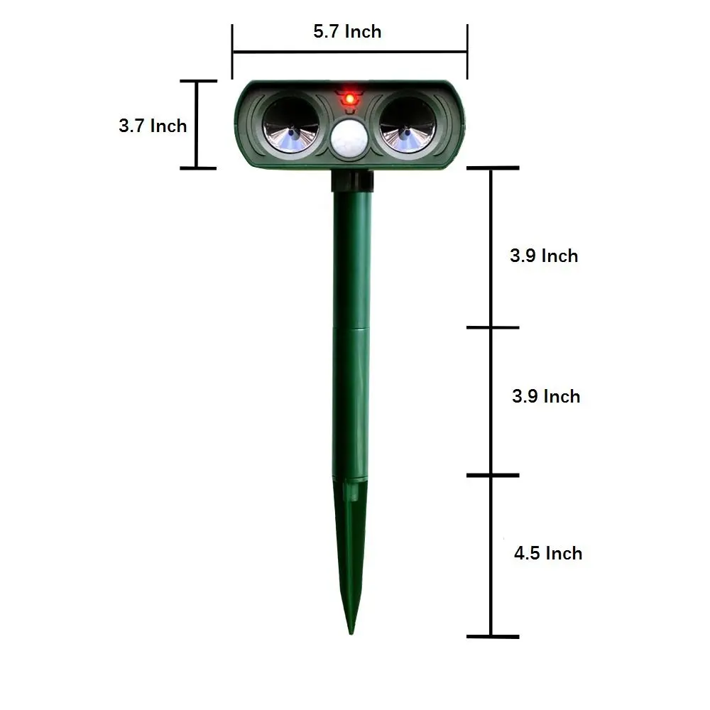 Устройства активируются движением и сочетаются со сверхзвуковым звуком, вспышками света и звука, чтобы изгнать нежелательное маленькое животное с вашего места. Если животное как раз остается место и никакое движение, то этот прибор не был бы активирован и никакой апперант результат. Поэтому, пожалуйста, выясните маршрут, по которому будут двигаться или появляться кошки, собаки, мыши, крысы, белки, затем подключите или установите это устройство, и оно отлично подойдет для их сдерживания. Во-вторых, включите это устройство, затем издайте звук и мигающий свет. Если нет, вам лучше поместить его на солнце на день или написать нам по электронной почте.