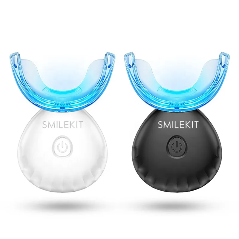 Удобный дизайн и простота в использовании-Эластичный пищевой силикон может удобно поместиться в ваши зубы. Легкая водонепроницаемая перезаряжаемая база, вы можете наслаждаться 15 временами отбеливания после полной зарядки,