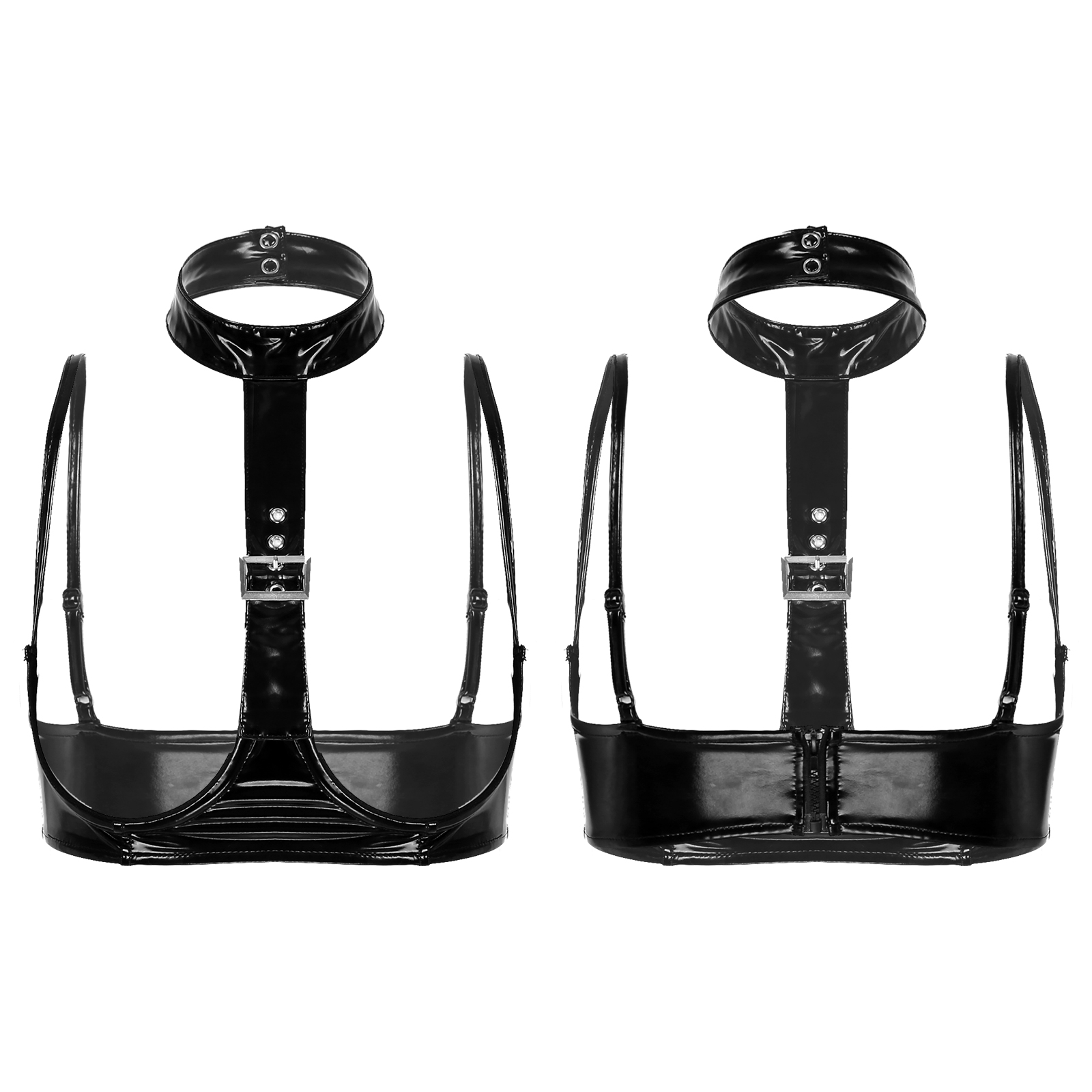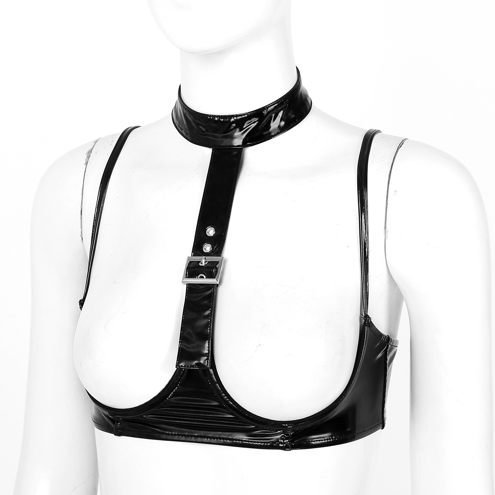 Женский корсет на бретельках, блестящий корсет из лакированной кожи, регулируемый Топ на бретельках.