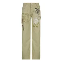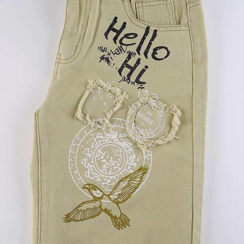 Модные рваные джинсы в стиле пэчворк с принтом; Брюки для дискотеки