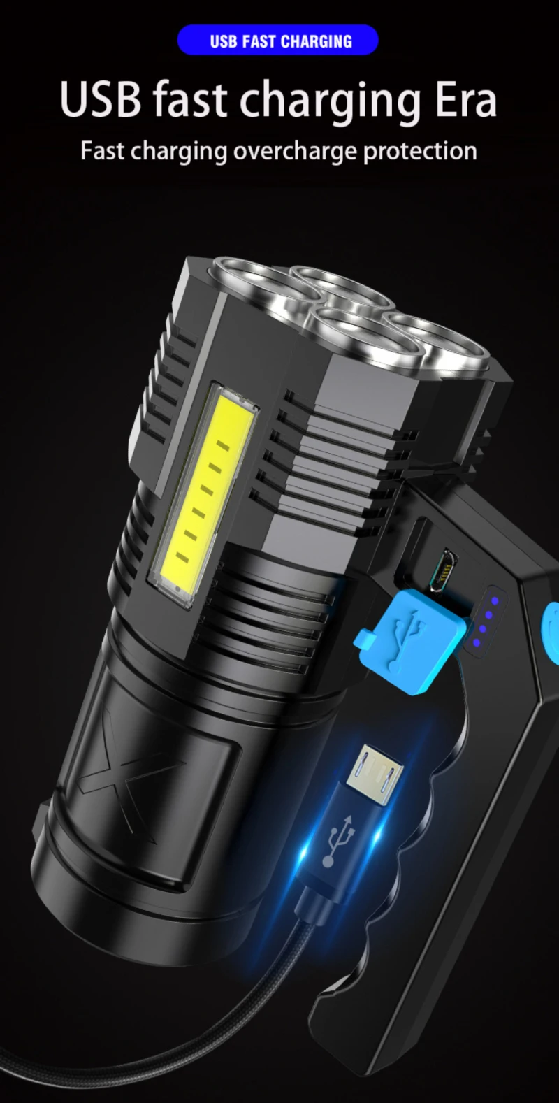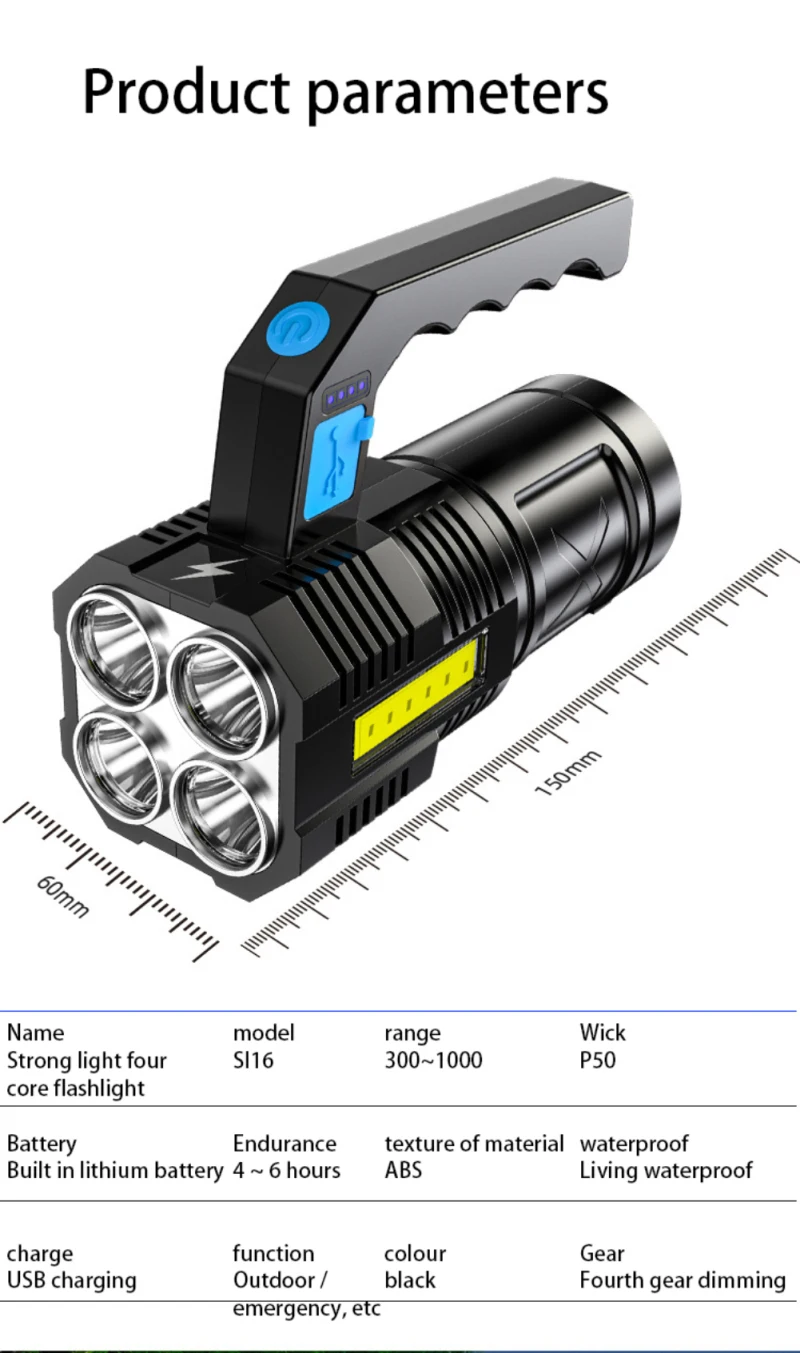 Название продукта: новый пластиковый фонарь USB зарядка 4LED боковой светильник наружный патруль светильник ing сильный светильник длинный выстрел поиск светильник