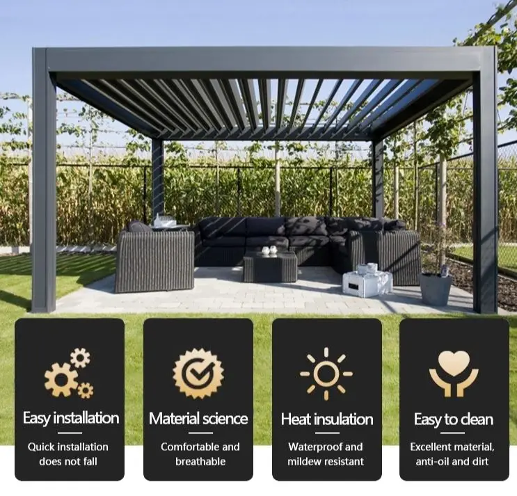 Моторизованный современный Реверсивный мотор светильник, ремень, подвижная крыша, открытый задний двор, сталь, Парагон с постом, алюминиевая беседка