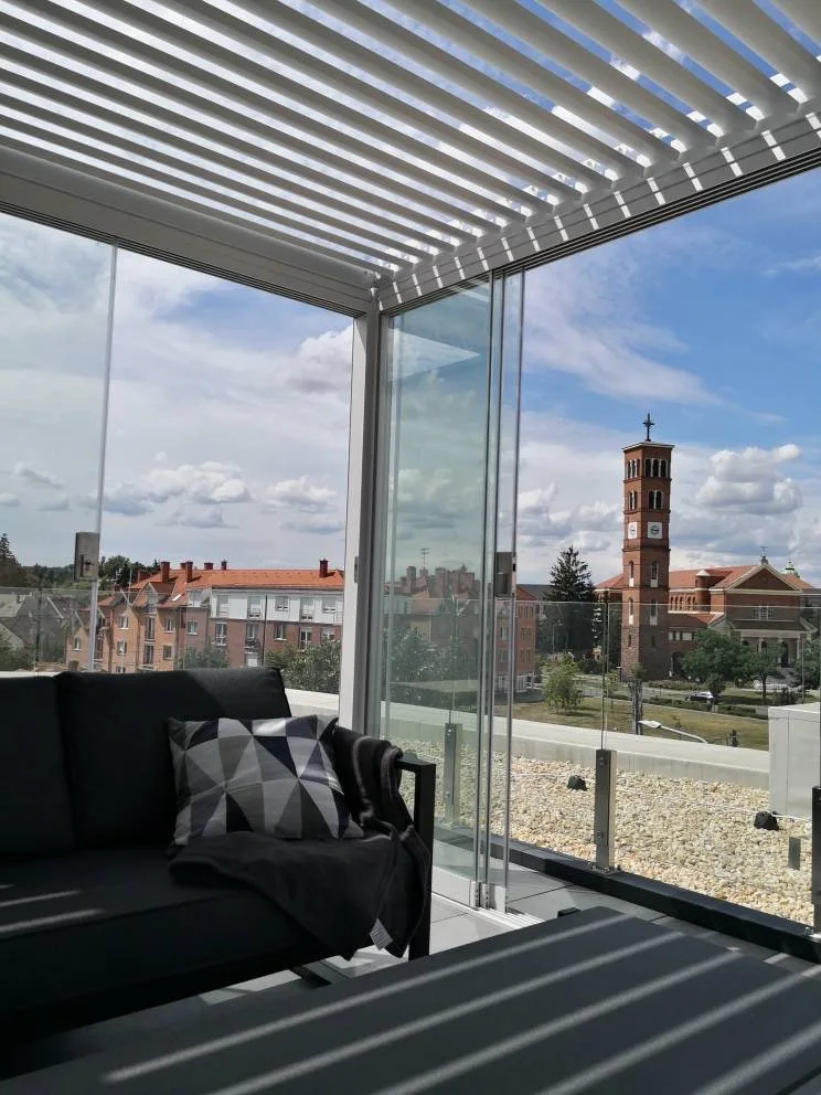 Жалюзи беседки полностью изготовлены из алюминия. С использованием manal top blabes