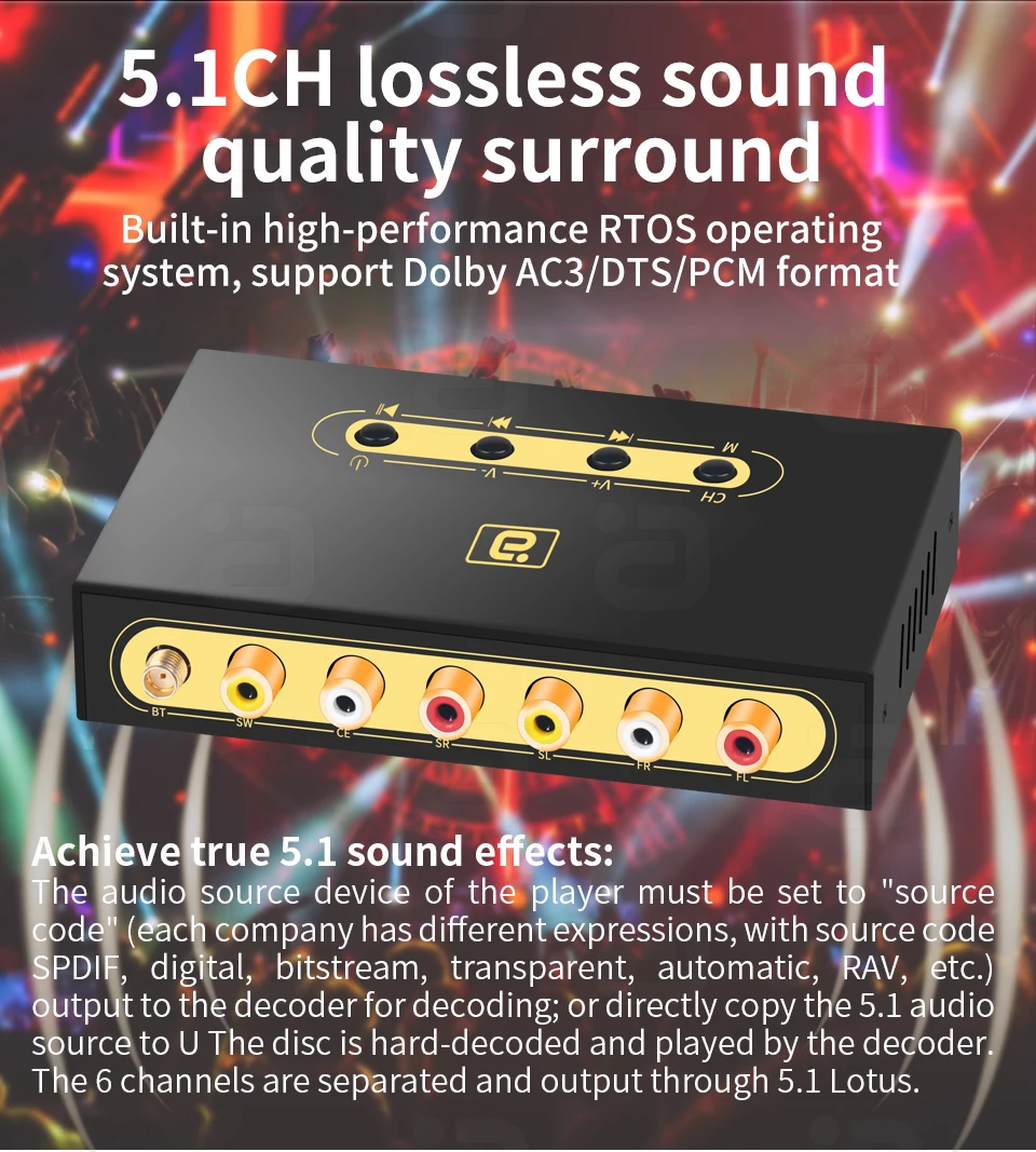 6. Surpport аппаратное декодирование (5,1 Разделение каналов), а также программное декодирование (2.0ch, 5.1ch)