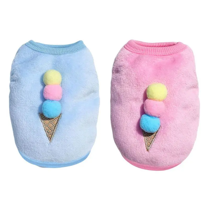 Плюшевый теплый жилет, рубашка с капюшоном, свитер с рисунком клубники и мороженого, зимняя одежда для кошек и собак, маленькие и большие собаки