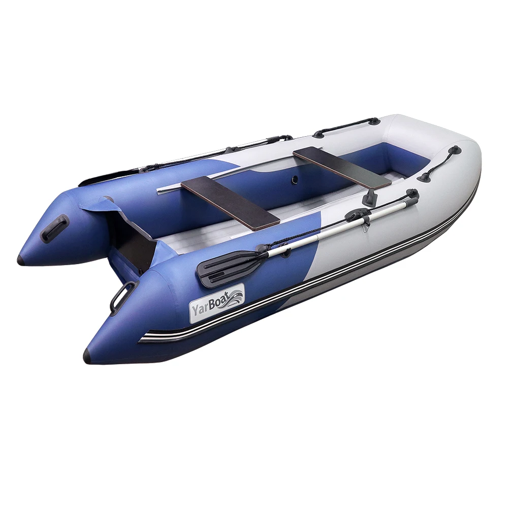 YarBoat 330A - лодка с надувным дном низкого давления длиной 330 см под мотор максимальной мощностью 15 л.с. Конструкция надувного дна разработана таким образом, что сохраняется комфортная высота между сидением и дном. Это обеспечивает удобную посадку и привычную глубину кокпита. Надувное дно килеватой формы обеспечивает хорошие мореходные качества, быстрый выход в режим глиссирования, высокую грузоподъемность. Лодка оснащена дополнительными деталями для удобства: ручки для переноски в носу и на конусах, рым-кольцо, ручка моториста, леерный шнур по бортам и в носовой части, системой передвижных сидений «ликпаз-ликтрос». От забрызгивания защищают «косынки» в транцевой части, а также привальный брус с брызгоотбойником.