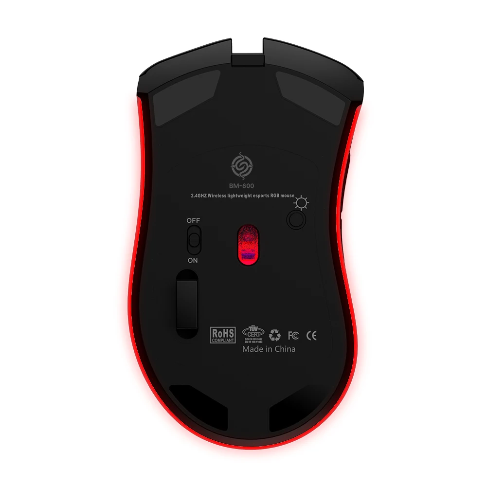 BM600 6 кнопок 2,4 ГГц USB Беспроводной RGB Мышь Перезаряжаемые 3 шестерни 1600 Точек на дюйм регулируемый полых сотовой геймерская мышь