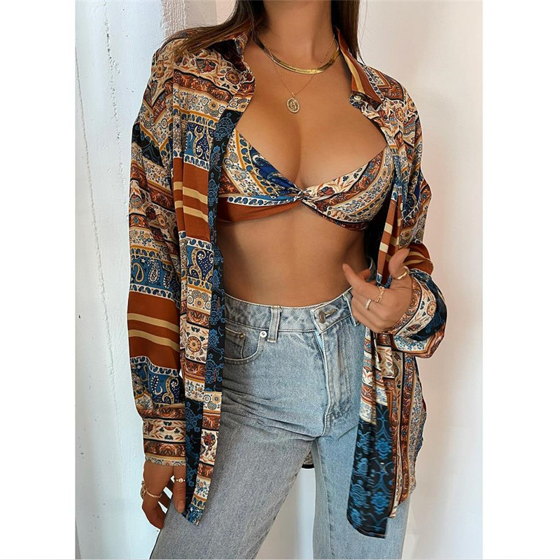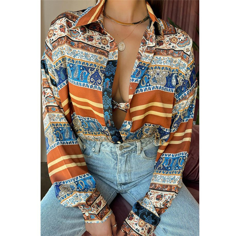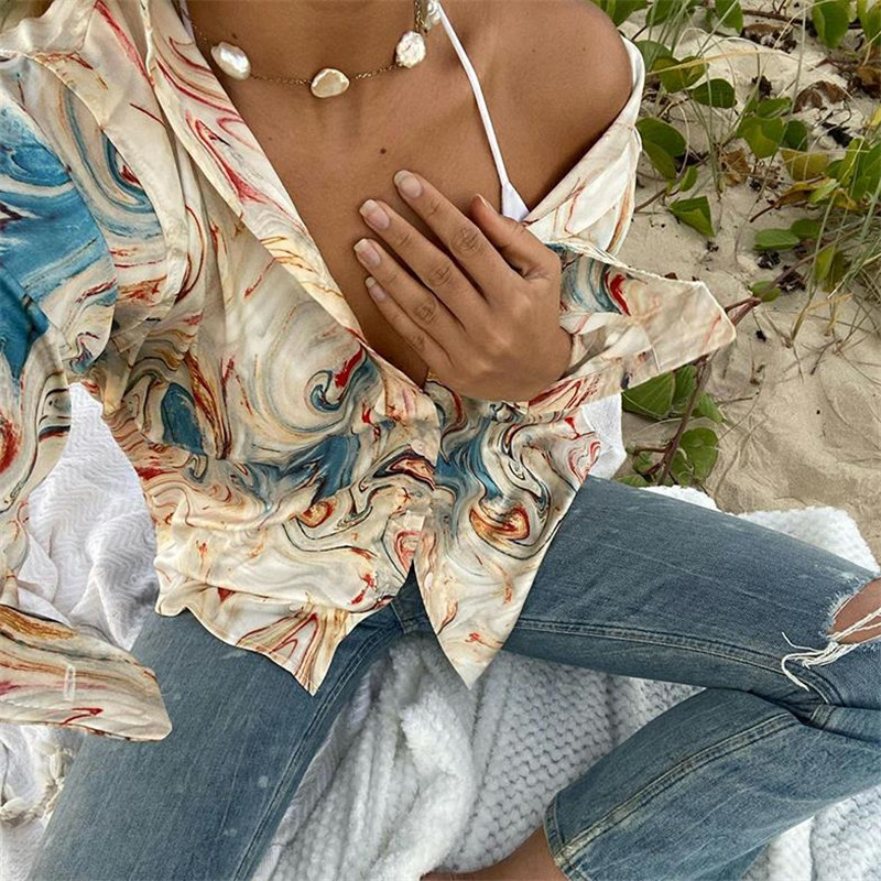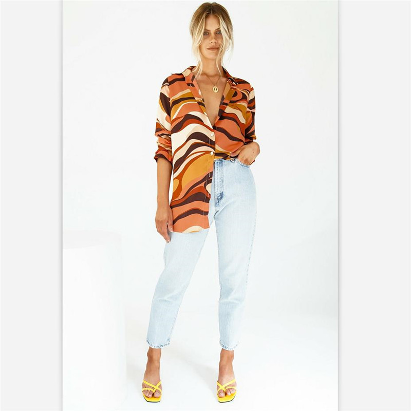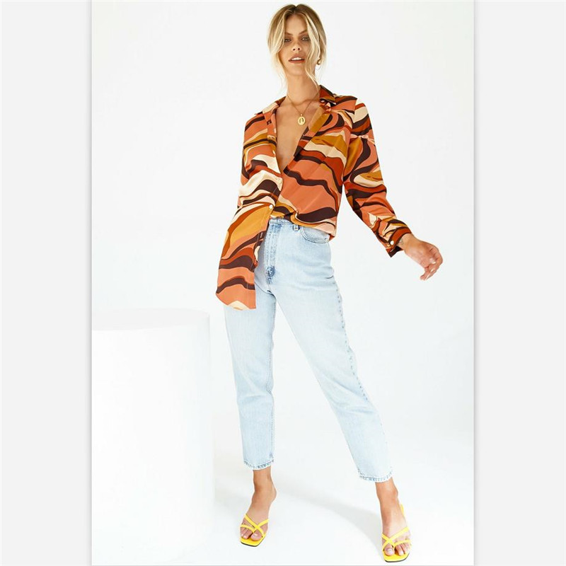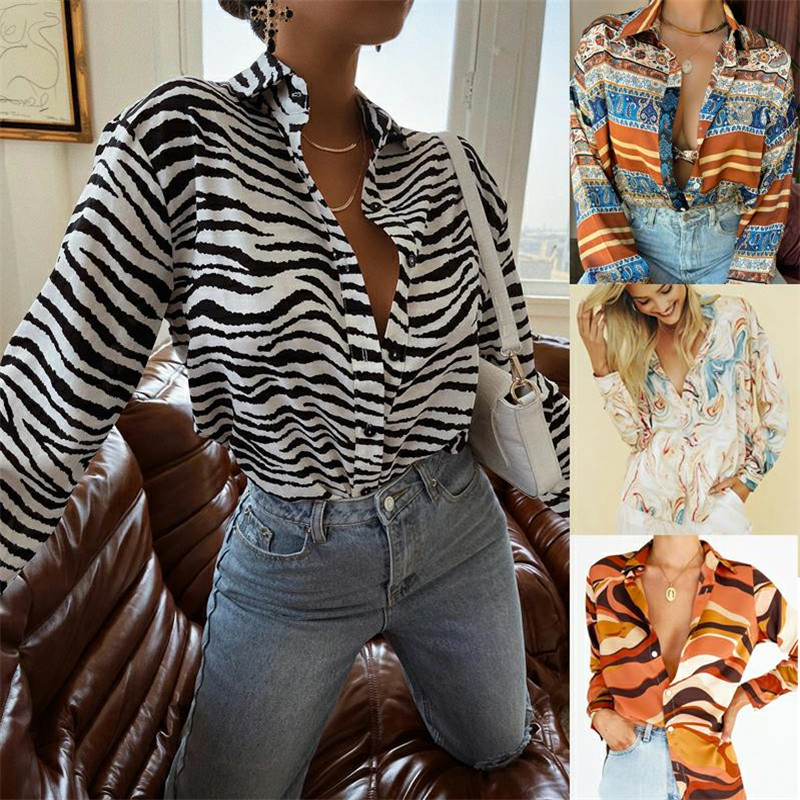 Женские рубашки с отложным воротником на пуговицах, Модные свободные топы с абстрактным/принтом зебры и длинными рукавами
