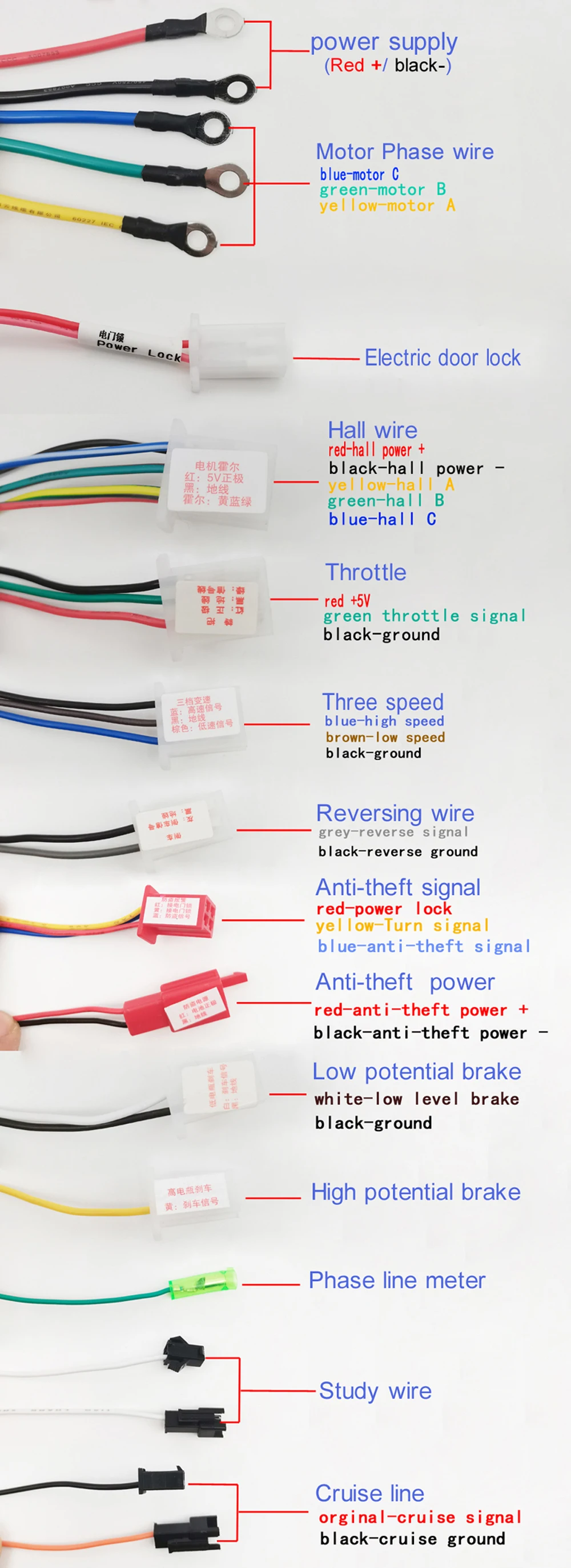 Двигатель + контроллер + переключатель + дроссельная заслонка (+ вперед/назад + 3 скорости) + маховик + цепь