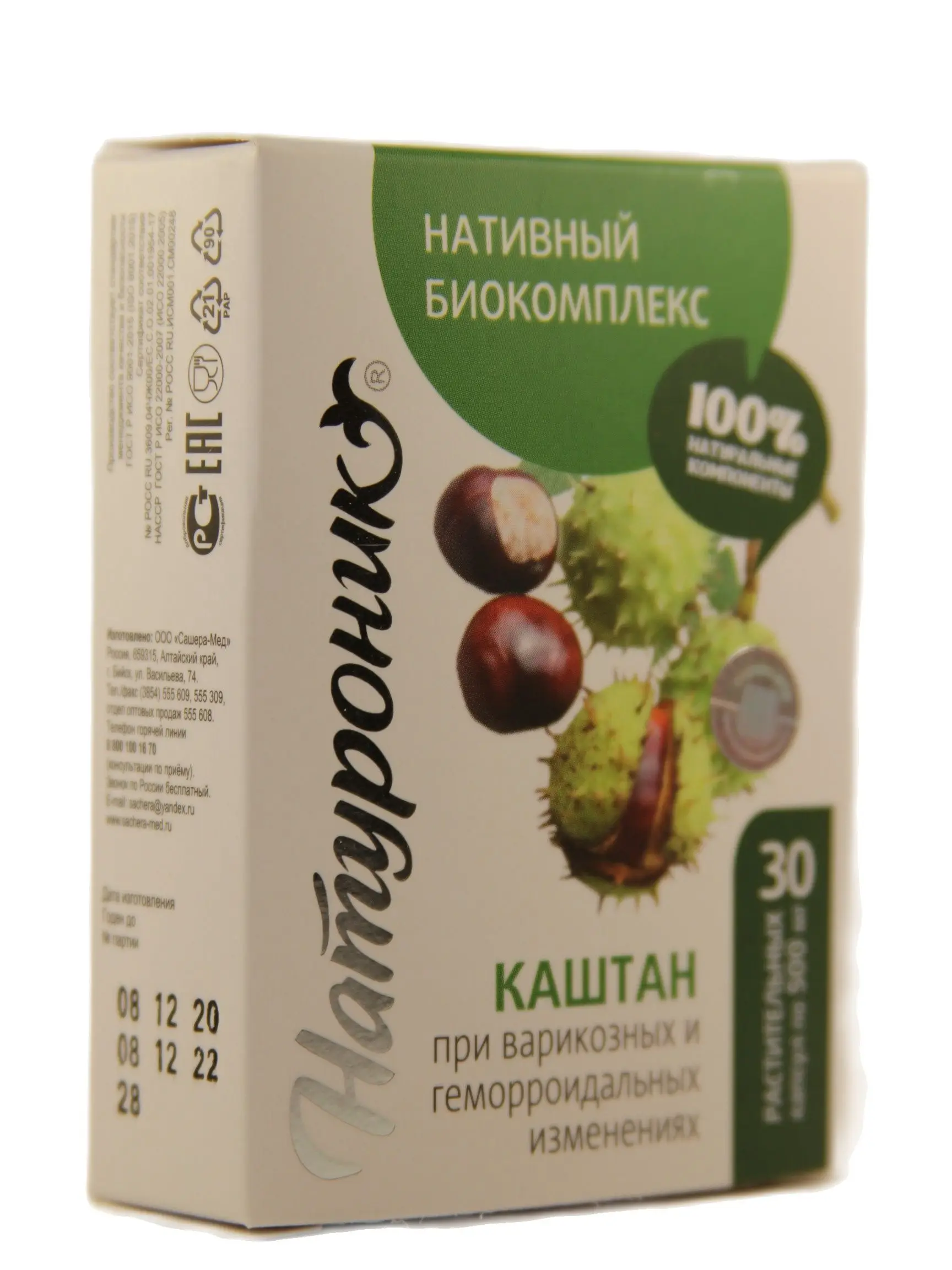 Комплекс обладает мягким и эффективным воздействием на организм, не вызывает нежелательного побочного действия, является 100% натуральным продуктом, который положительно воздействует на ослабленные и проблемные функции организма. Комплекс «Натуроник® каштан» совместим с лекарственными средствами и рекомендован в качестве самостоятельного продукта для устранения изменений вен, сосудов и геморроидальных образований, а также в комплексном применении с лекарственными средствами.