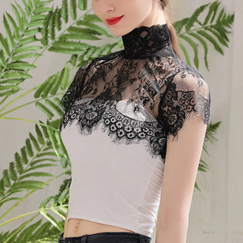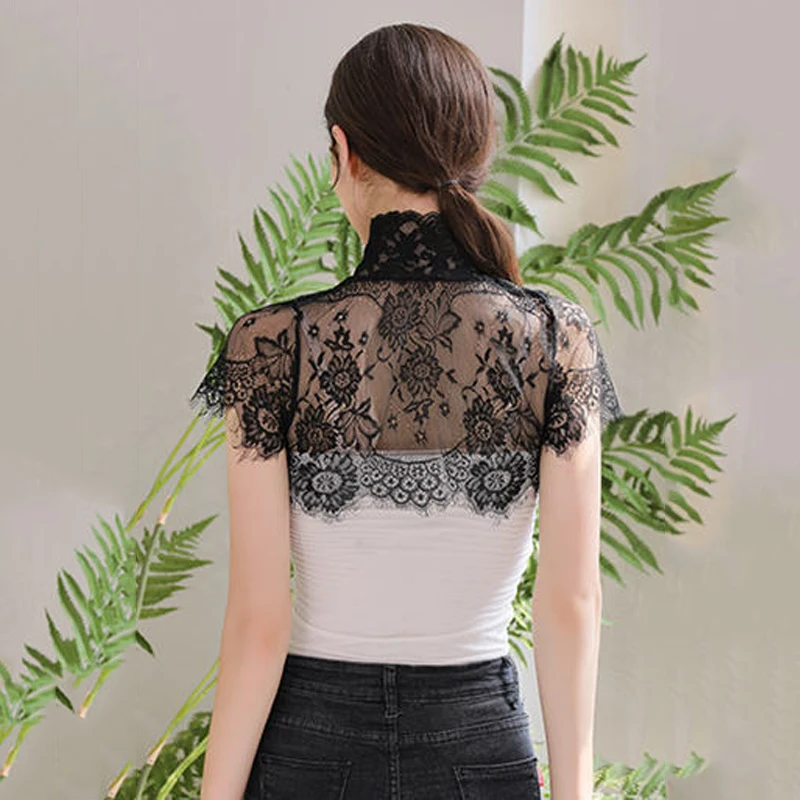 С короткими рукавами, высоким воротником, высоким воротником и воротником под горло, с вырезами и цветочным кружевом.