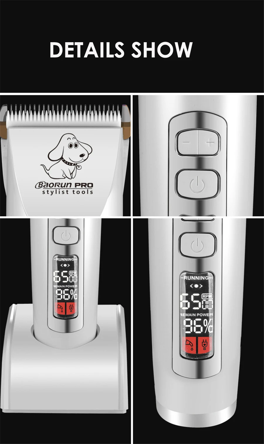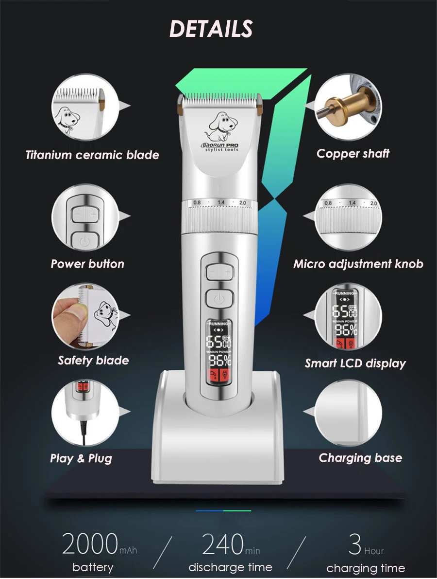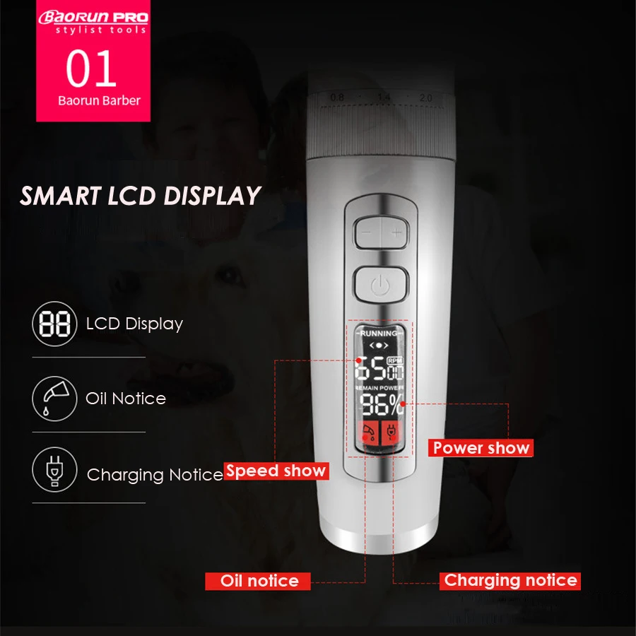 BaoRun P9 профессиональная машинка для стрижки животных, кошек, собак, машинки для стрижки, электробритва, триммер для стрижки, перезаряжаемая машинка для стрижки, ЖК-дисплей