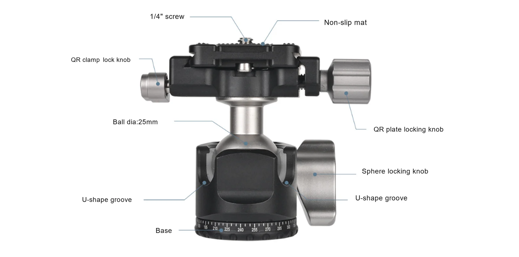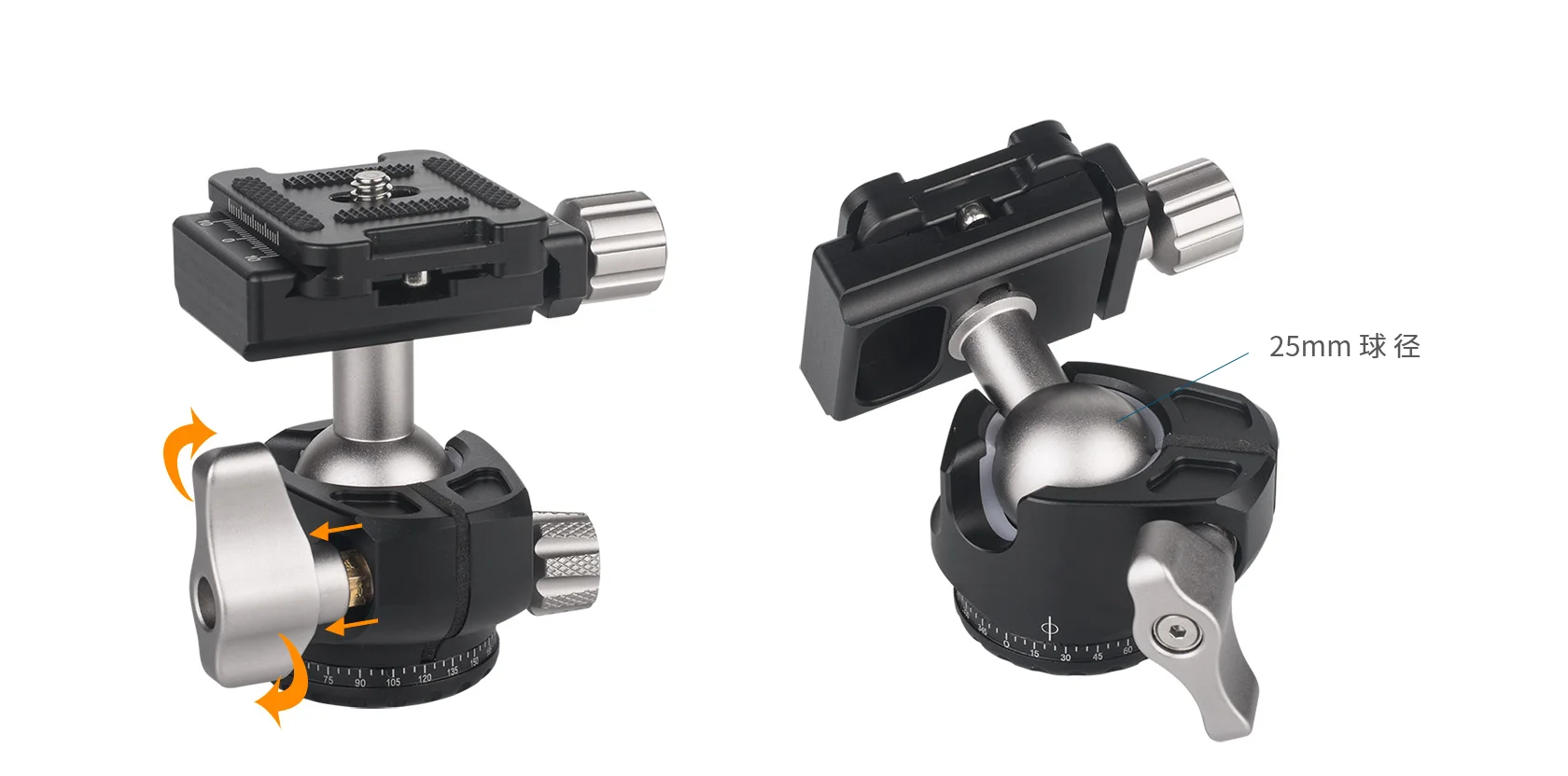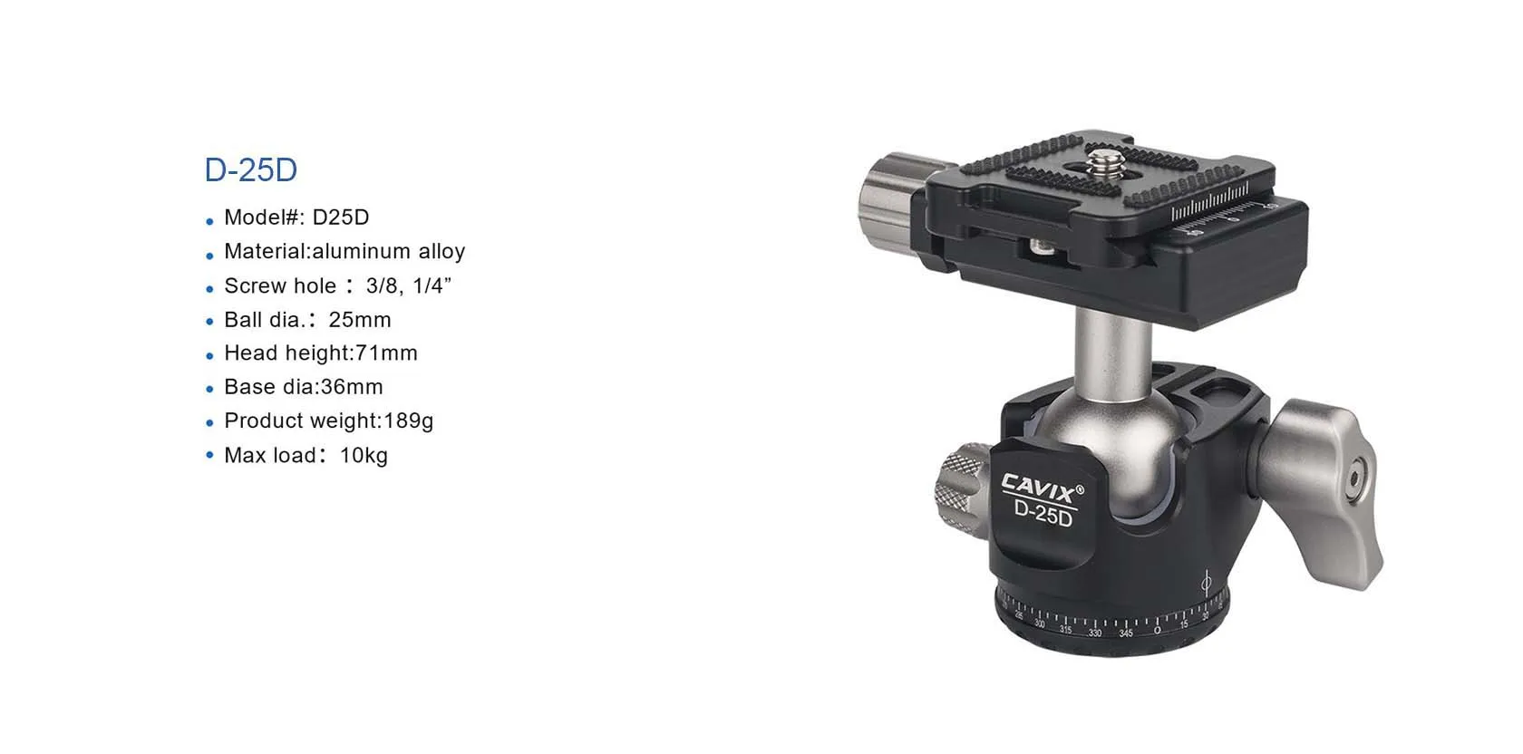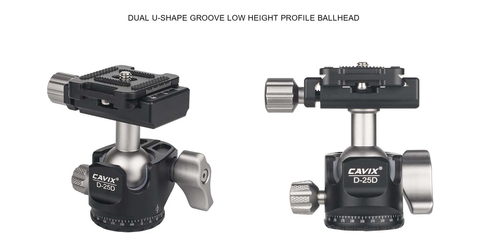CAVIX dual U-Shape groove Low height profile head D-25D Aluminum Alloy Photography Ballhead Tripod for DSLR Camera