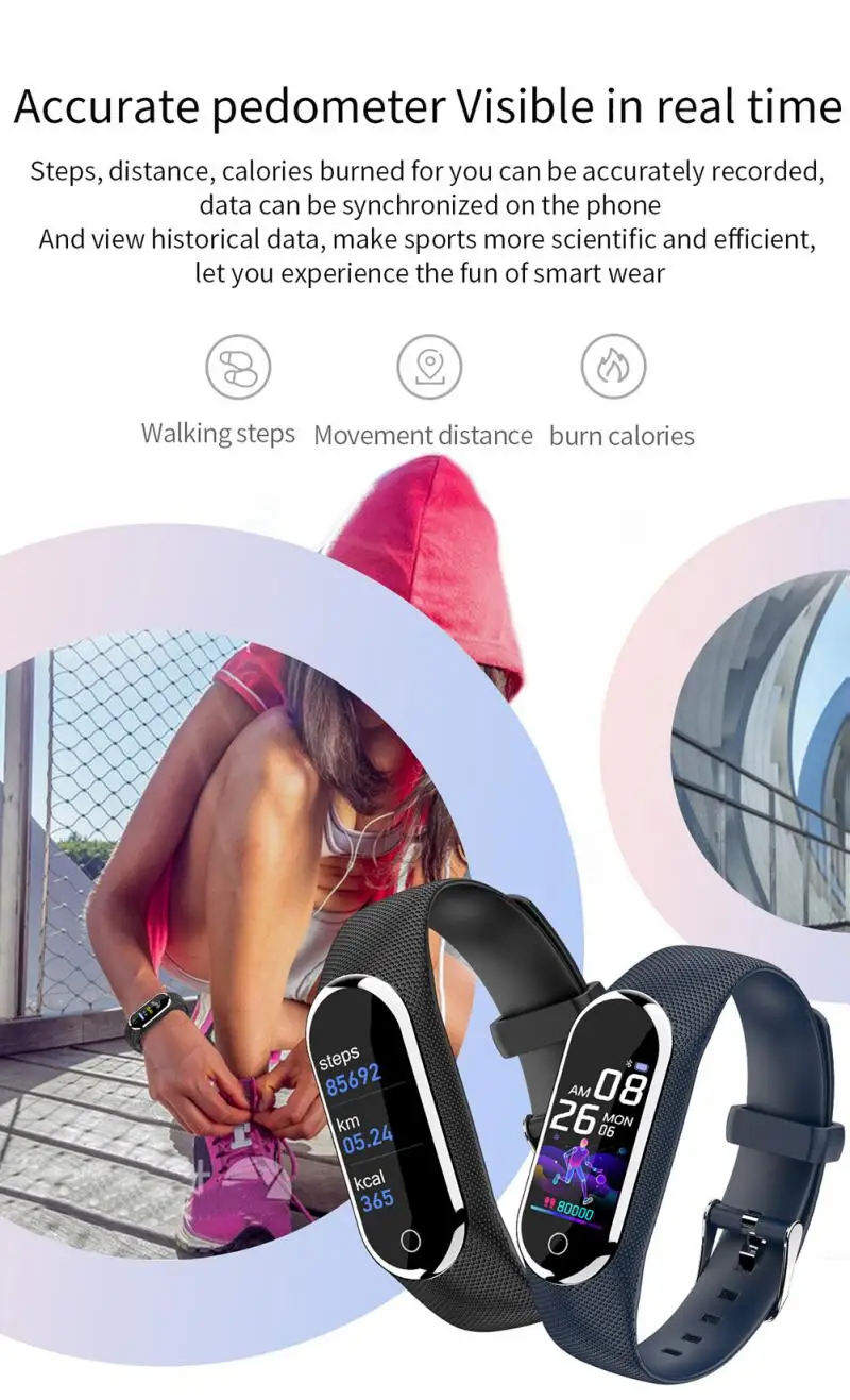 Steps, distance, and calorie consumption are accurately recorded for you, and data can be synchronized on your mobile phone