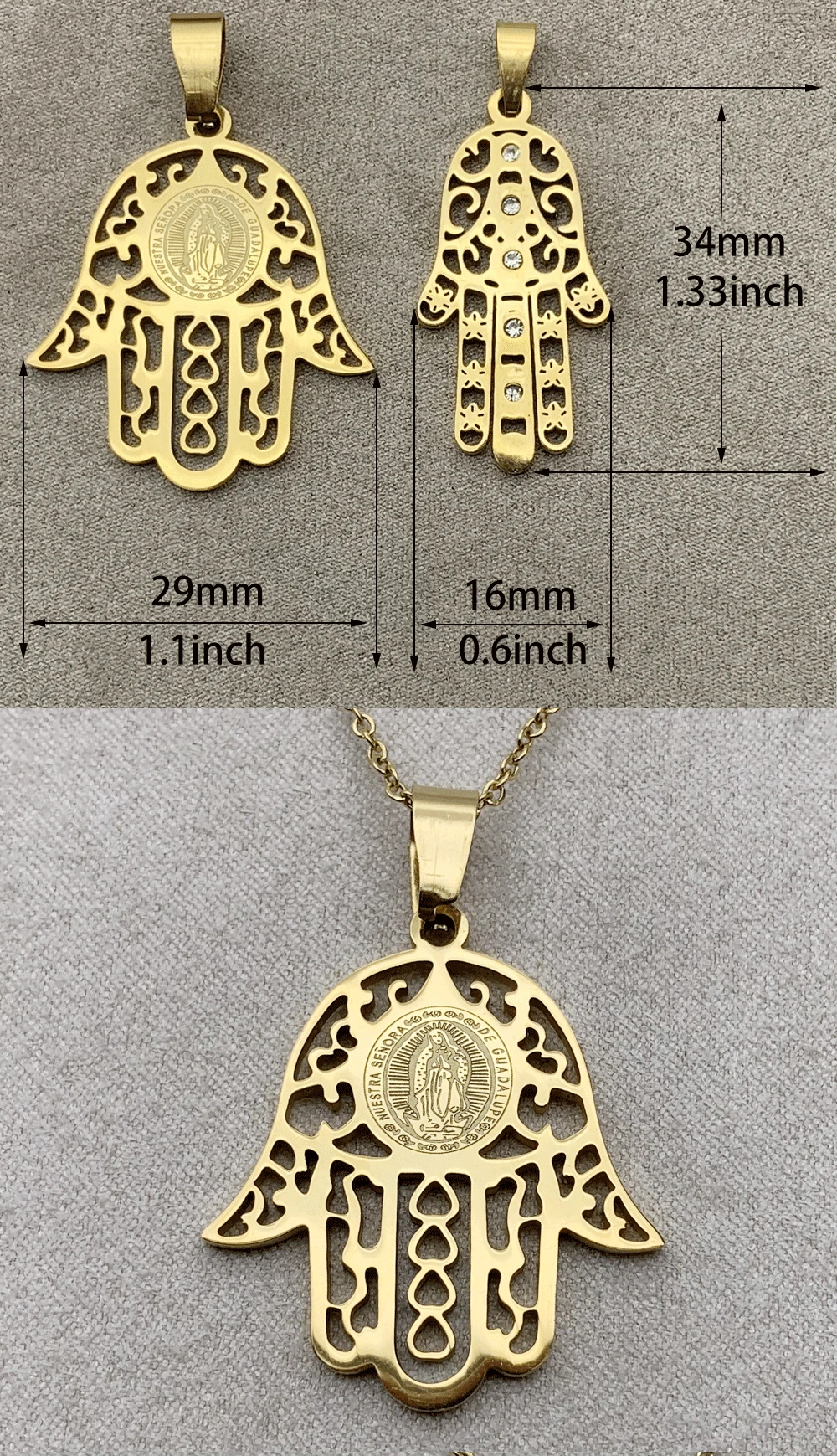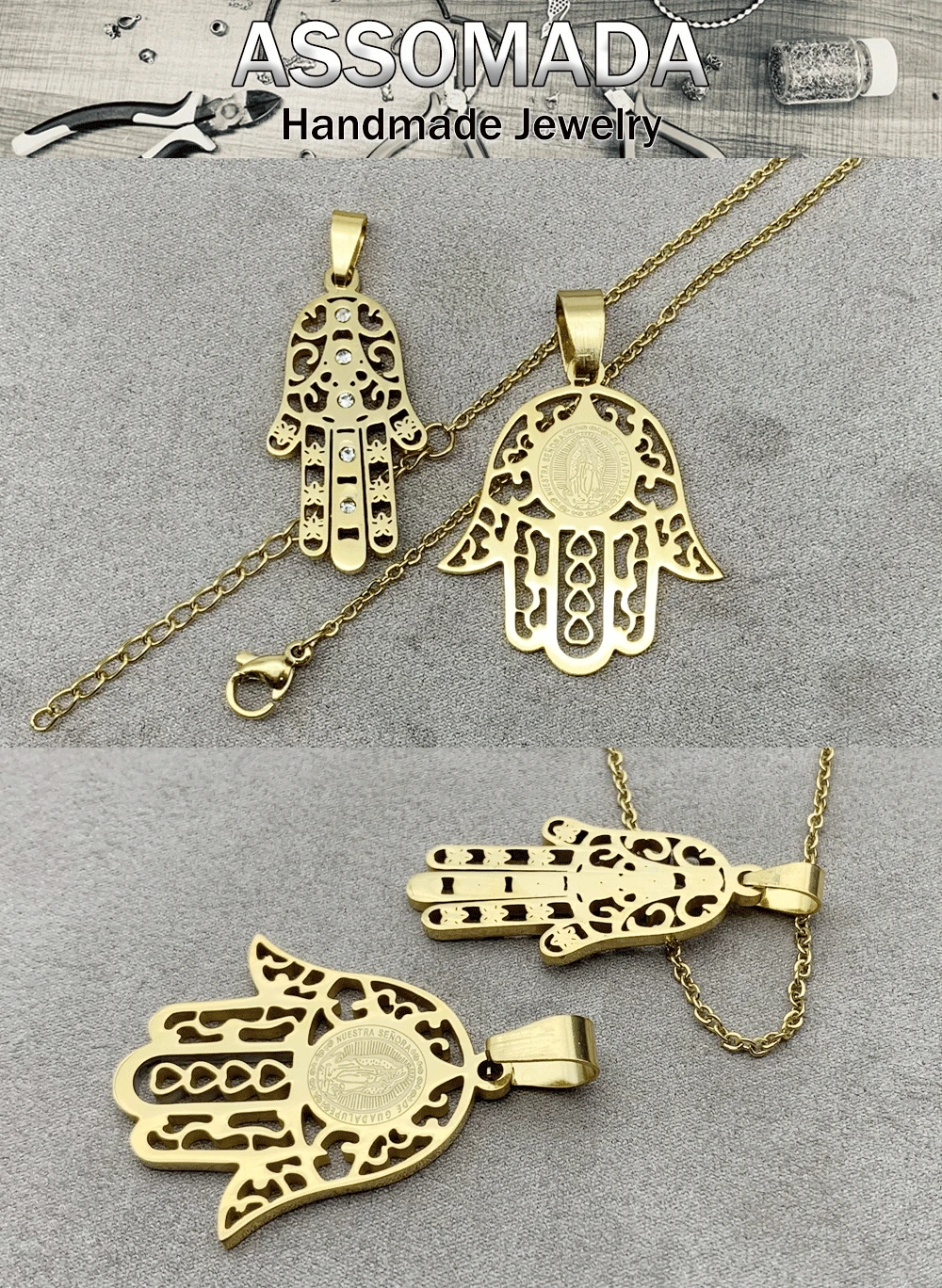 Особенности:Нержавеющая стальЗолотая ФатимаРучной кулон для ожерелья, ювелирные изделия DIY инструменты, кулон аксессуары ручной работы
