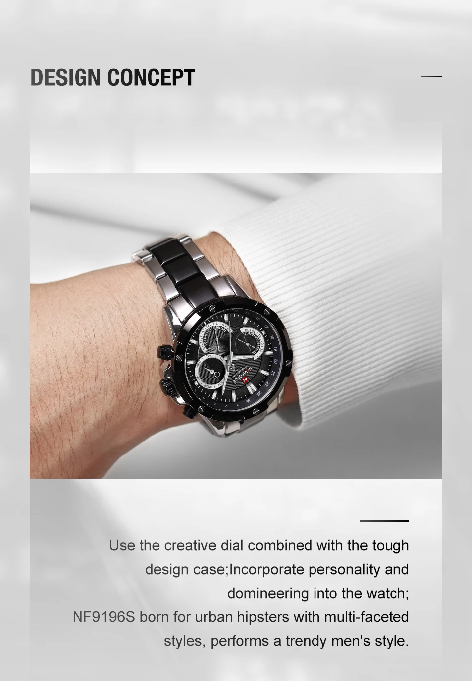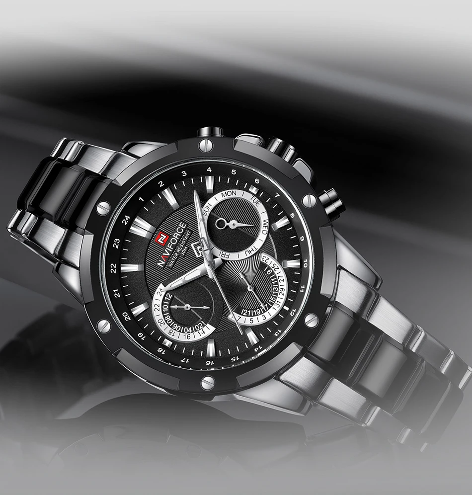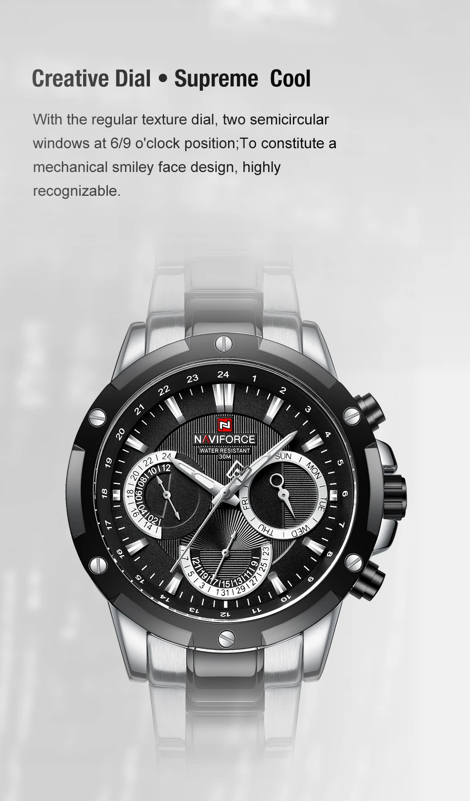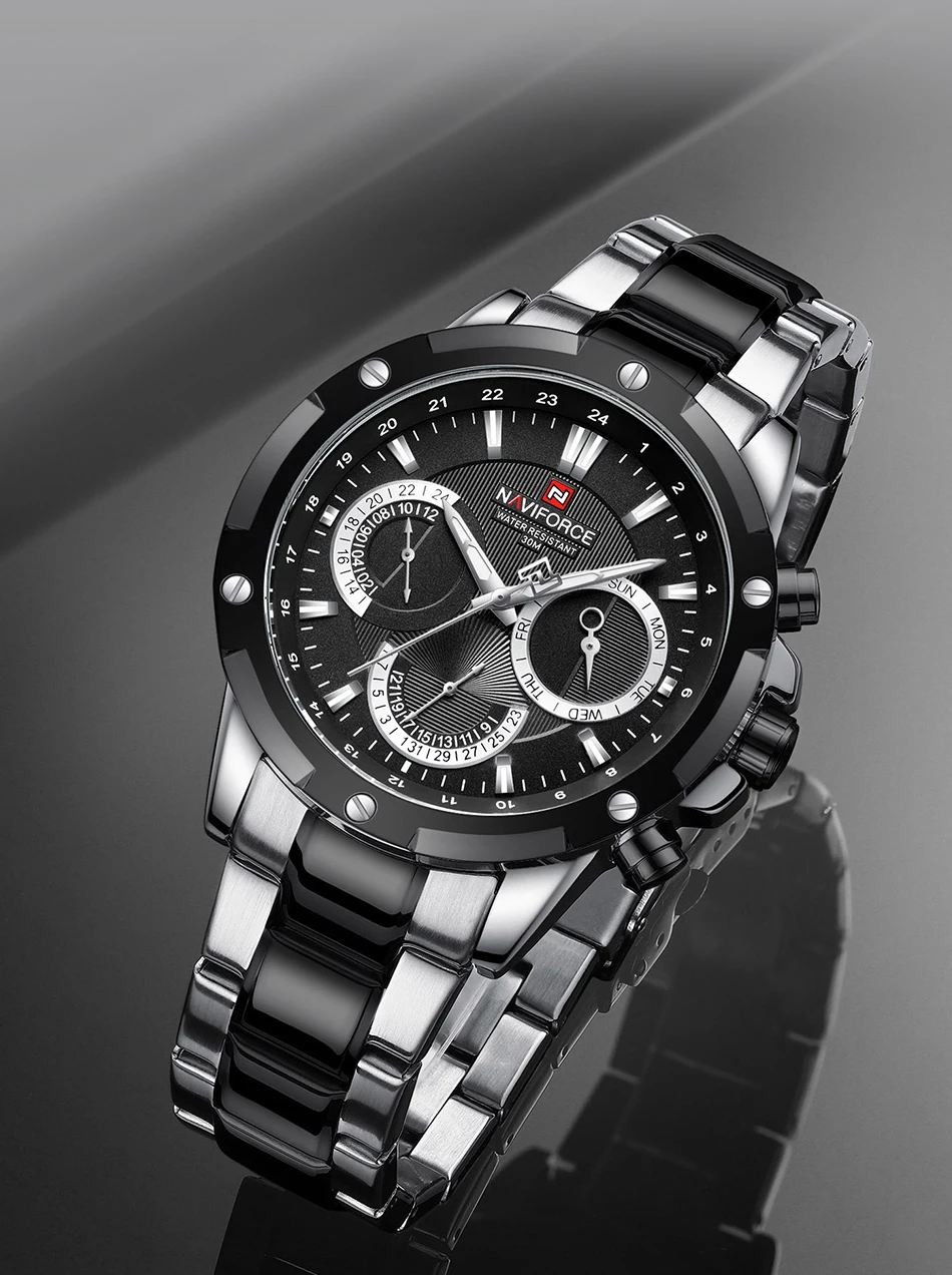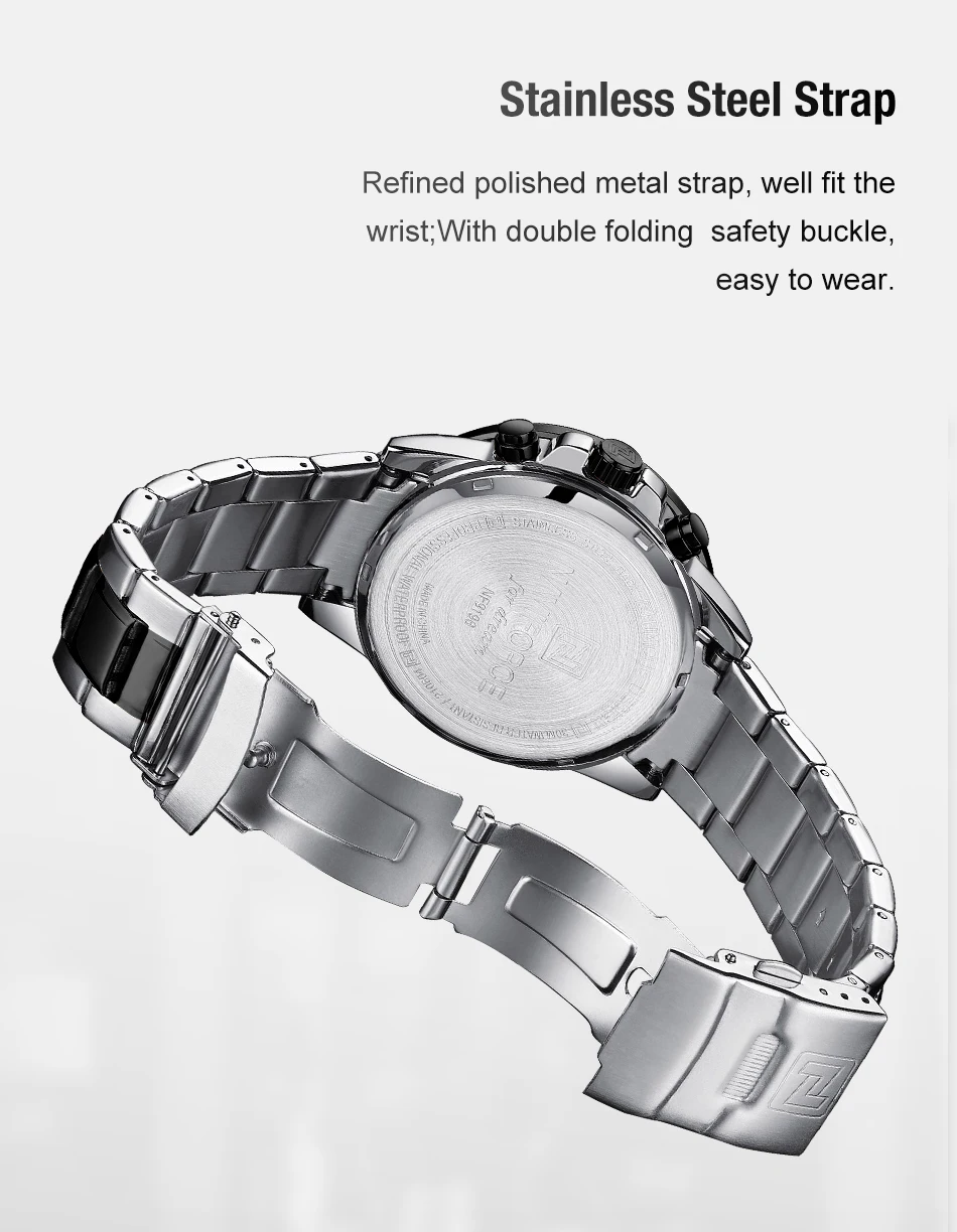 Характеристики: Водонепроницаемость 30 м, отображение дня и даты в течение 24 часов, светящиеся стрелки