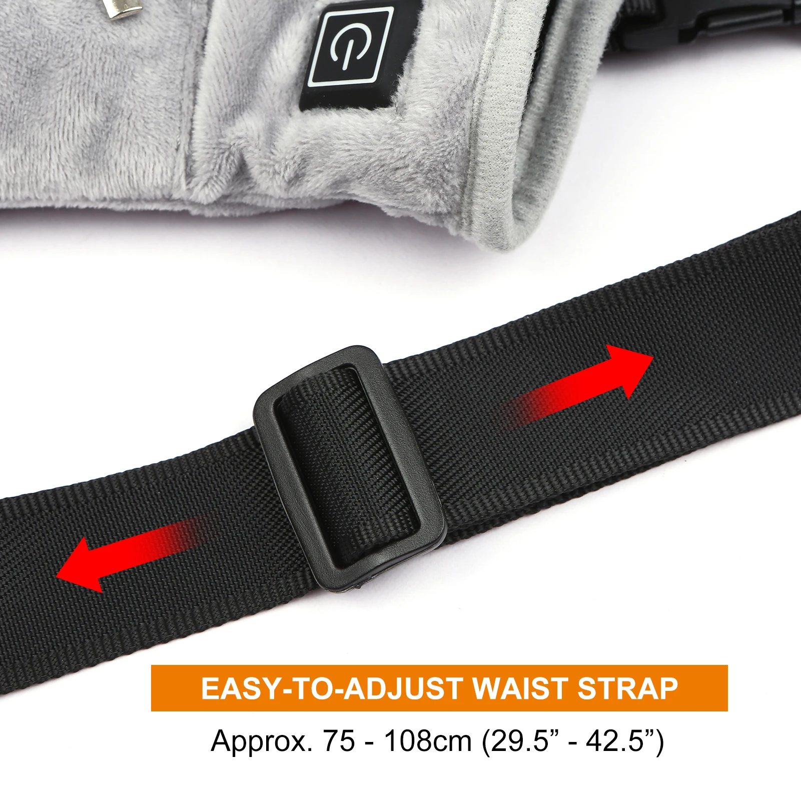 Регулируемый пояс позволяет удобно носить этот теплый пояс вокруг талии.