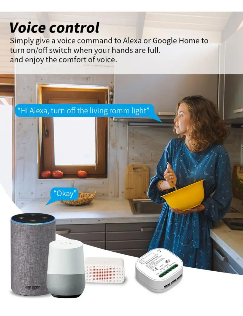 Simply give a voice command to Alexa or Google Home to turn on/off switch when your hands are full and enjoy the comfort of voice.