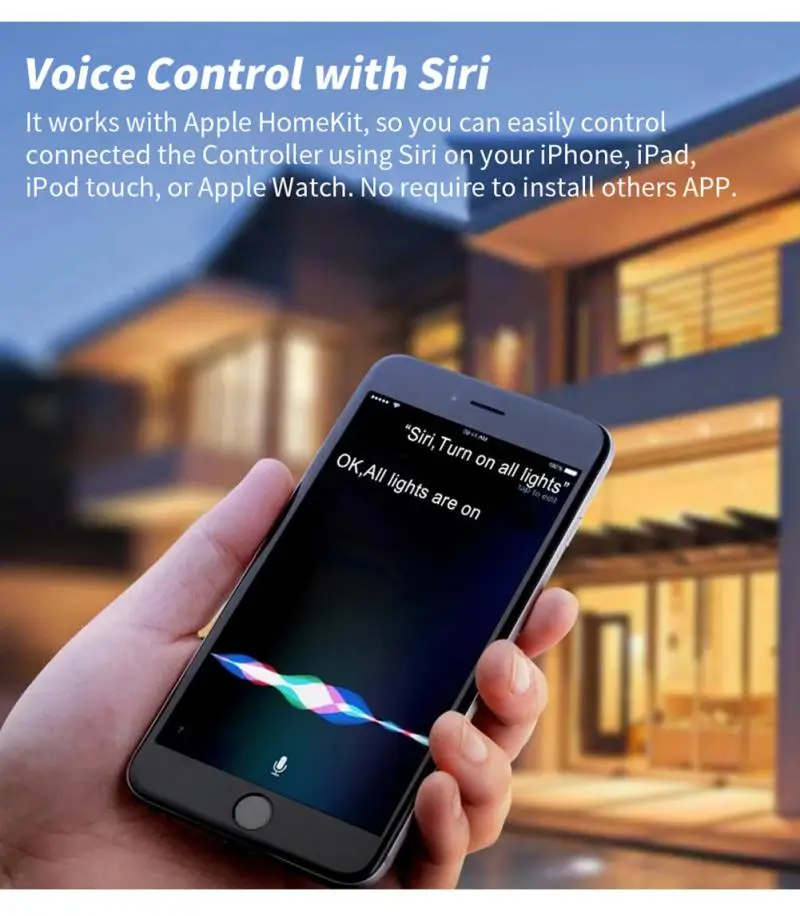 It works with Apple HomeKit, So you can easily control