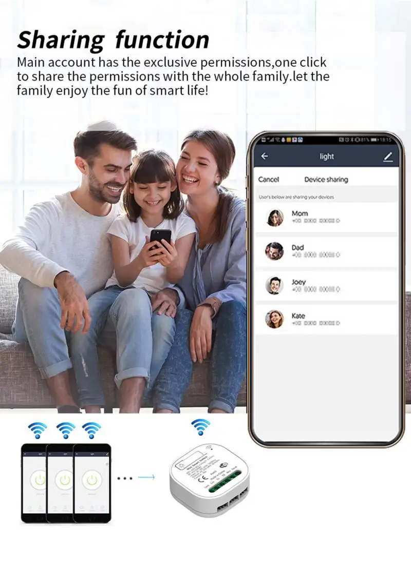 Main account has the exclusive permissions,one click to share the permissions with the whole family.let the family enjoy the fun of smart life!