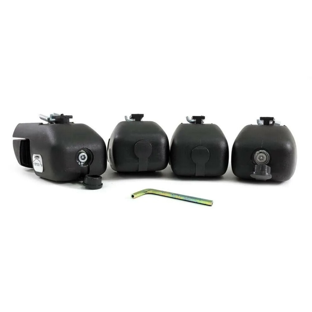 Комплектация: 4 опоры с секретками - 2 крыловидные поперечины - Инструкция - Инструмент для установки.