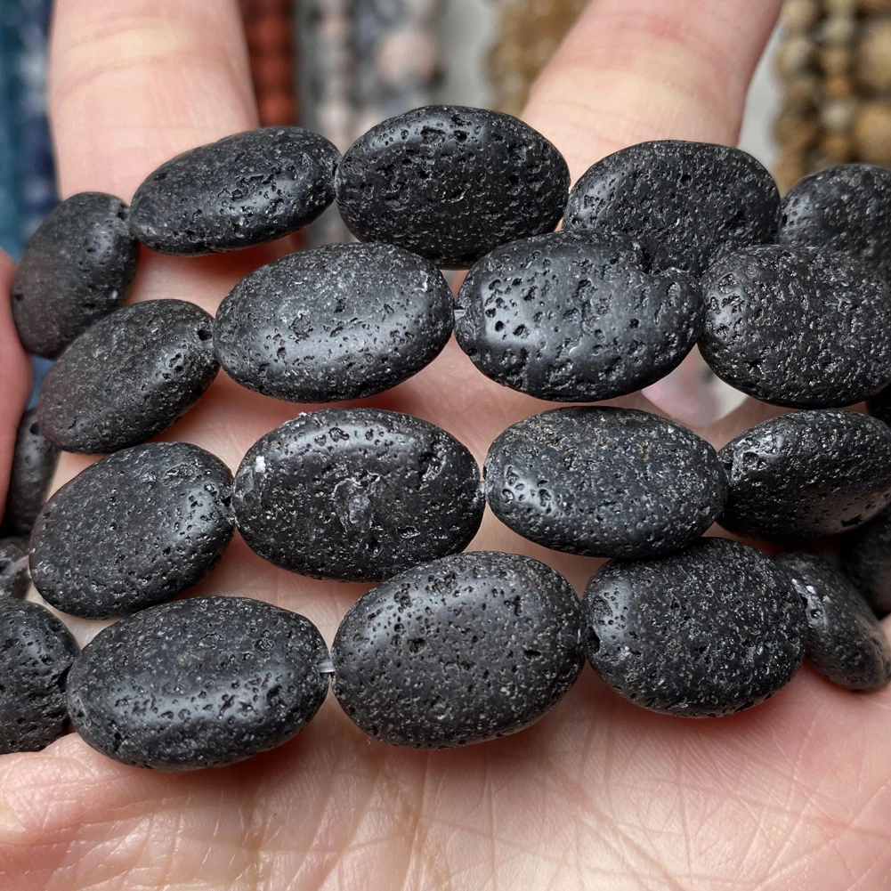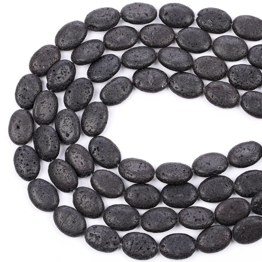 13x1 8 мм 20 шт натуральные вулканические каменные бусины плоские овальные черные бусины лавы для изготовления ювелирных изделий Diy ожерелье браслет аксессуары