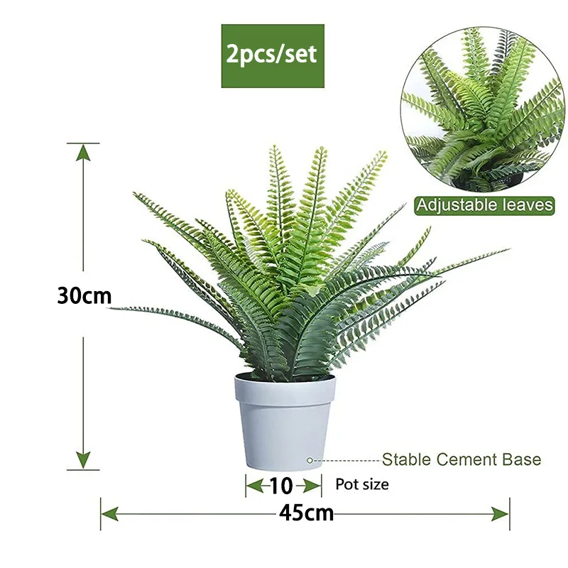Разработанный в качестве настольного растительного растения с высокой имитацией формы, равномерно окрашенной и детализированной текстурой, придает вашему интерьеру стильный вид. Используйте эти искусственные папоротники отдельно или в группе других искусственных растений.