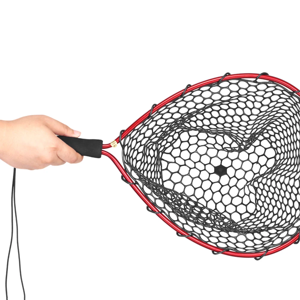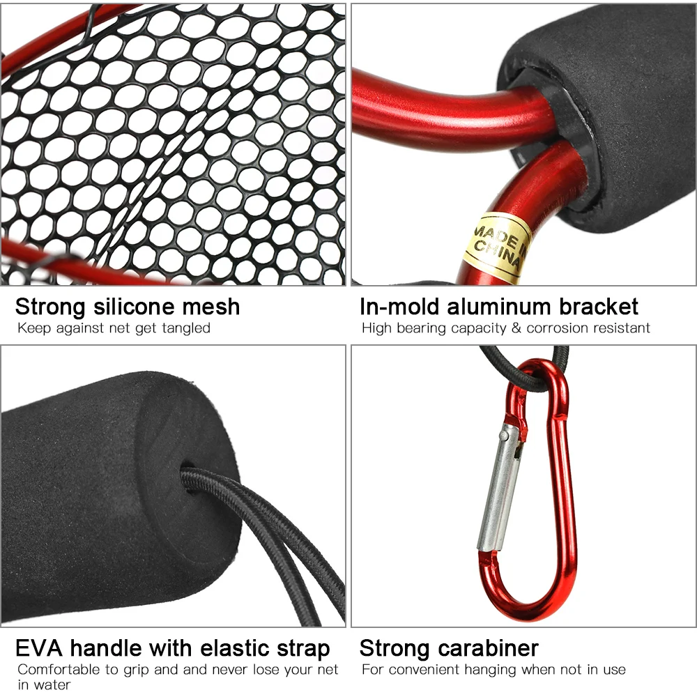 Алюминиевая рама в форме, прочная силиконовая сетка и удобная ручка из ЭВА делают ее идеальным инструментом для ловли и высвобождения рыб. Более того, в конце есть эластичный ремешок, предотвращающий его эффективное снижение.