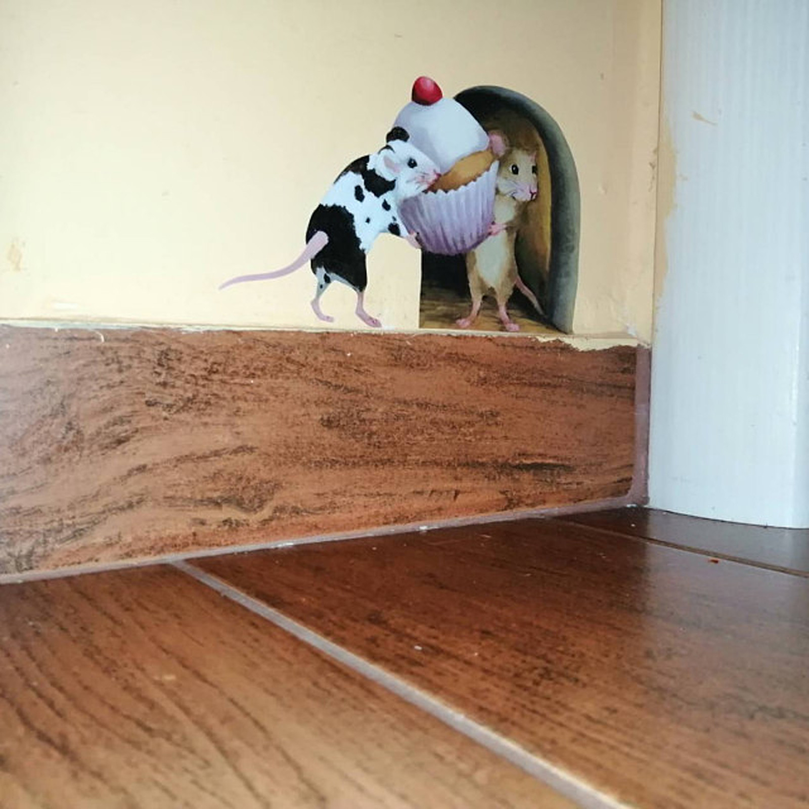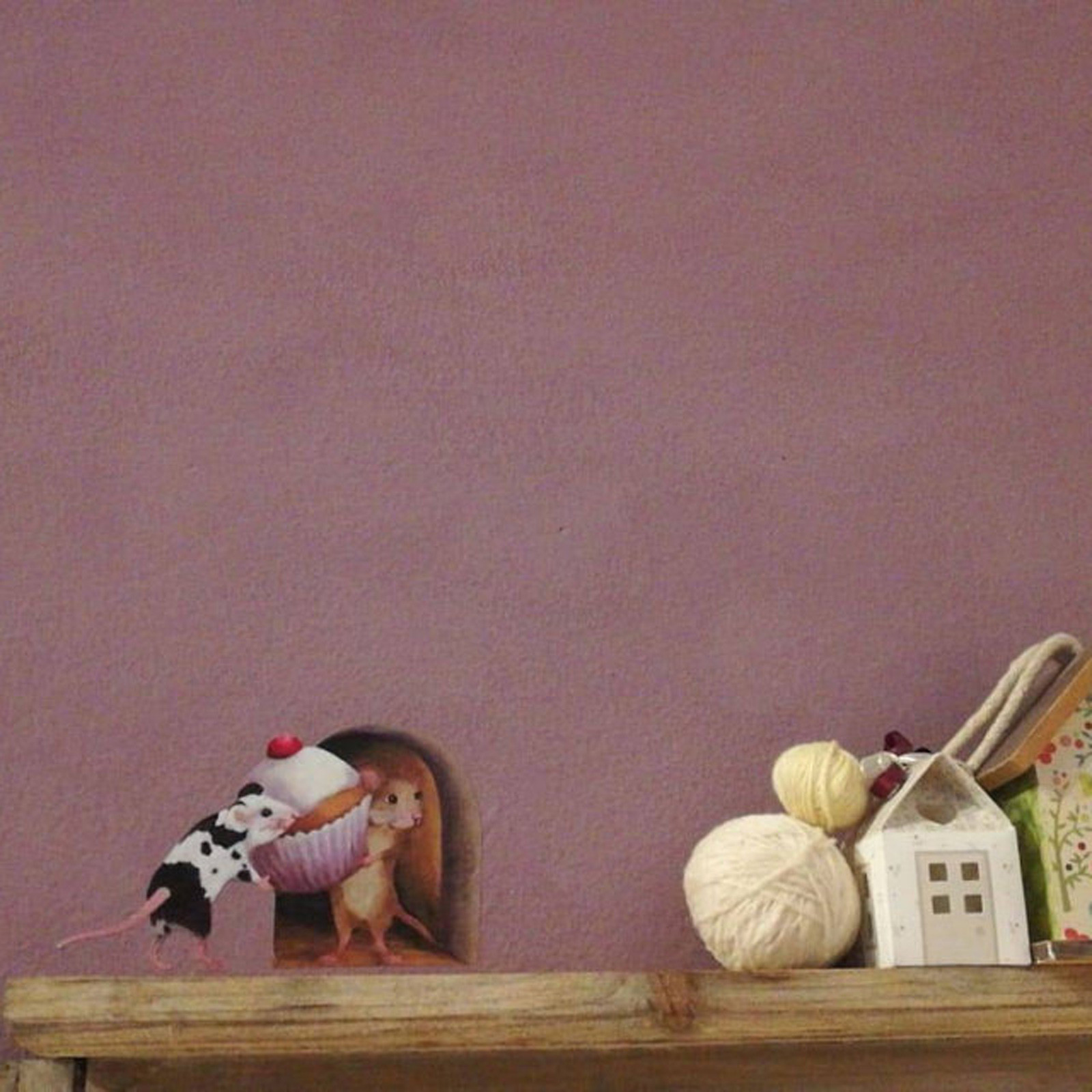 Наклейка на стену с отверстием для мыши, обои с кексами, украшение для угла стены