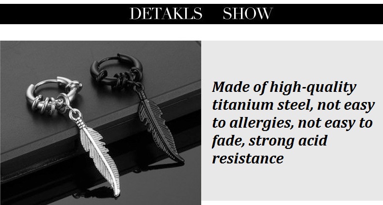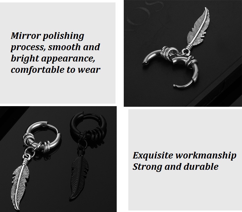 Серьги-подвески с перьями для мужчин и женщин из нержавеющей стали с круглой пряжкой в стиле панк-рок, хип-хоп, антиаллергенные серьги-кольца