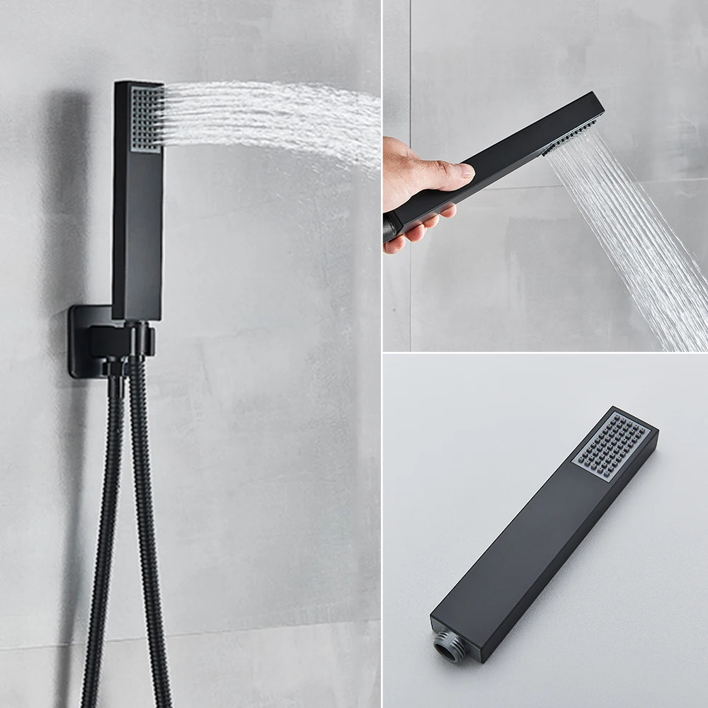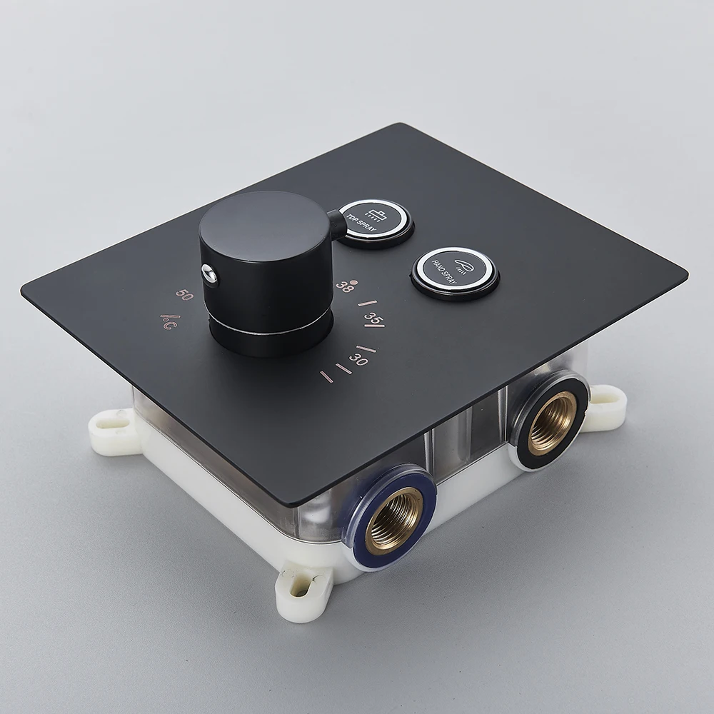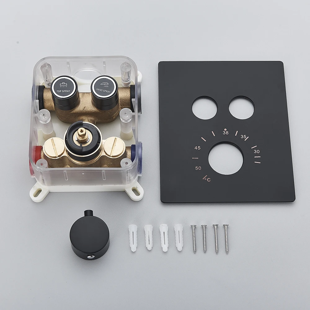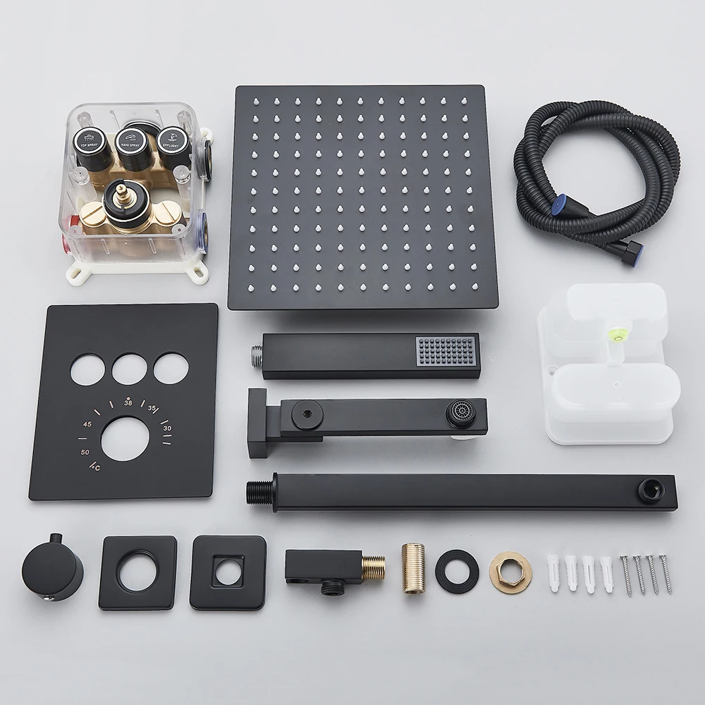 Новый матовый черный Термостатический смеситель для душа для ванной комнаты, набор водопада для дождя и ванны, смеситель для душа, настенный кран с кнопкой