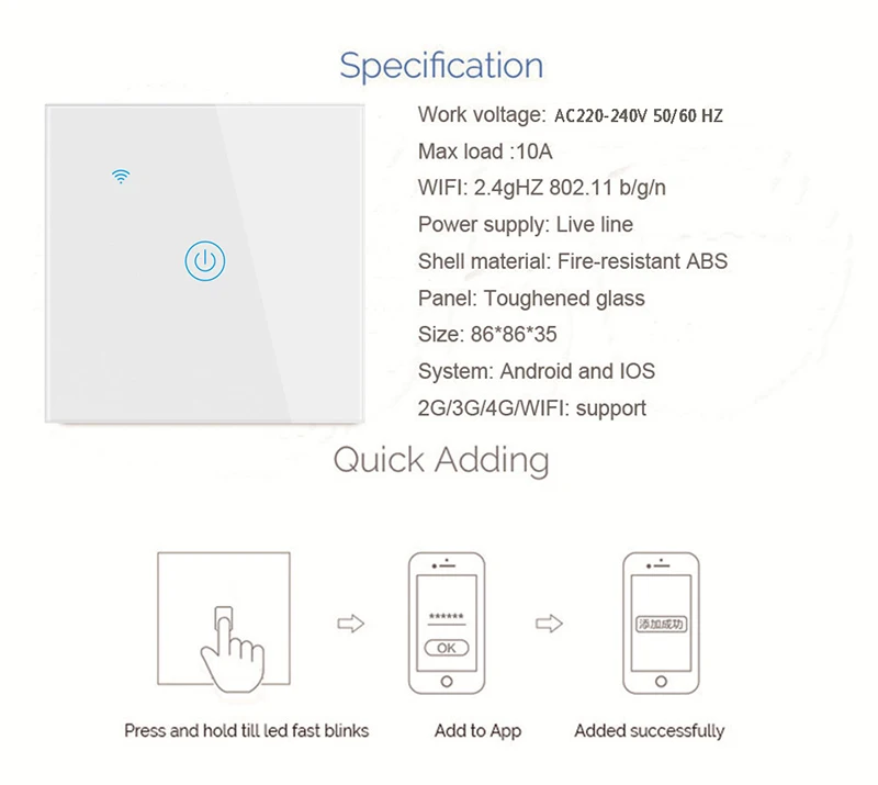 Сенсорный экран из закаленного стекла этого Смарт-переключателя чувствителен к сенсору управления, высококачественный прочный стеклянный материал обеспечивает до 20 миллионов сенсорных фигурок благодаря нашему тщательному тестированию. Водонепроницаемая, влагостойкая, устойчивая к царапинам.