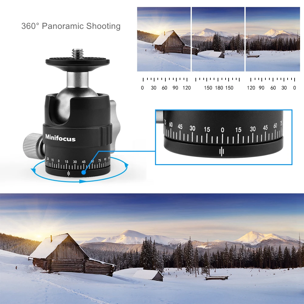 【 Поворот на 360 ° и наклон на 90 ° вращение на 360 ° по горизонтали и наклон на 90 градусов соответствует вашему углу, отделите ручку блокировки, чтобы легко зафиксировать шариковую головку, а база регулировки демпфирования поддерживает Панорамное видео.