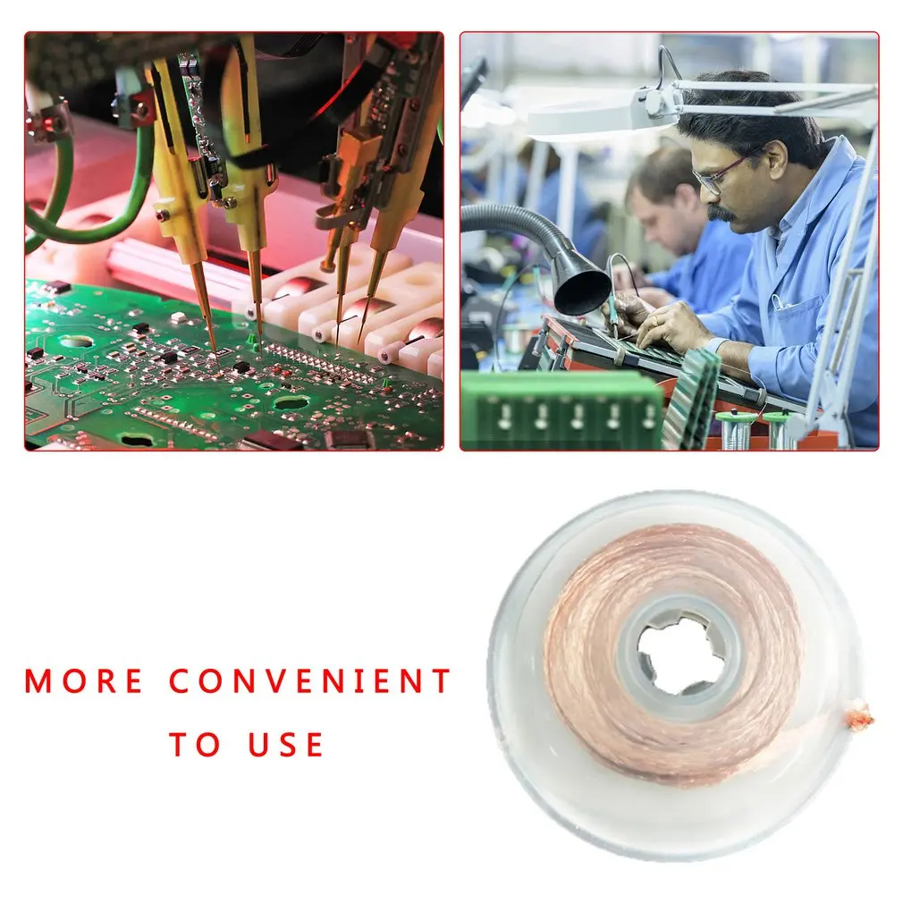 Этот продукт имеет прецизионную оплетку с медной проволокой и специальной химической формулой, негалогенную, низкоостаточную, не чистящую оловянную всасывающую ленту, необходимую для чистящих подушечек. Подходит для всех видов электроники, электрических приборов и прецизионных инструментов. Он может быстро поглощать олово и большое количество олова. Он предназначен для удаления избыточного припоя и так далее.