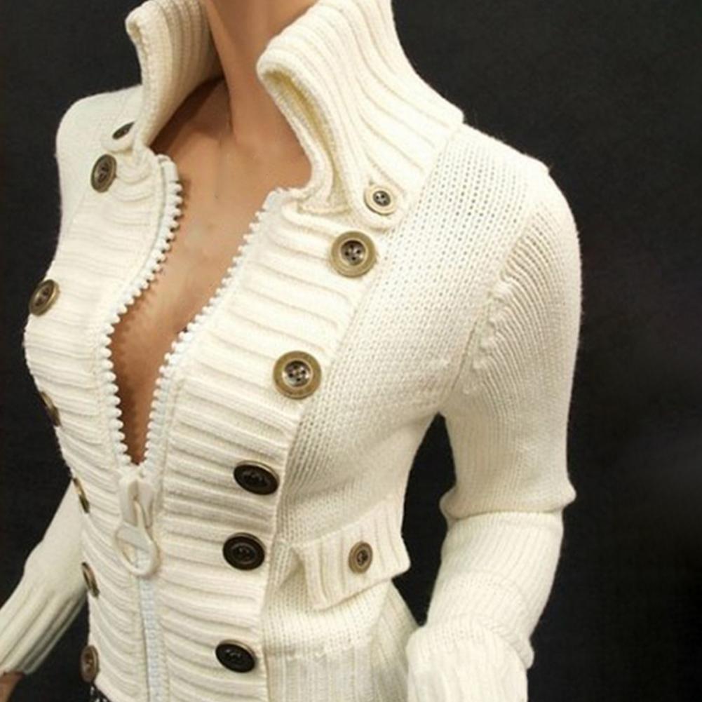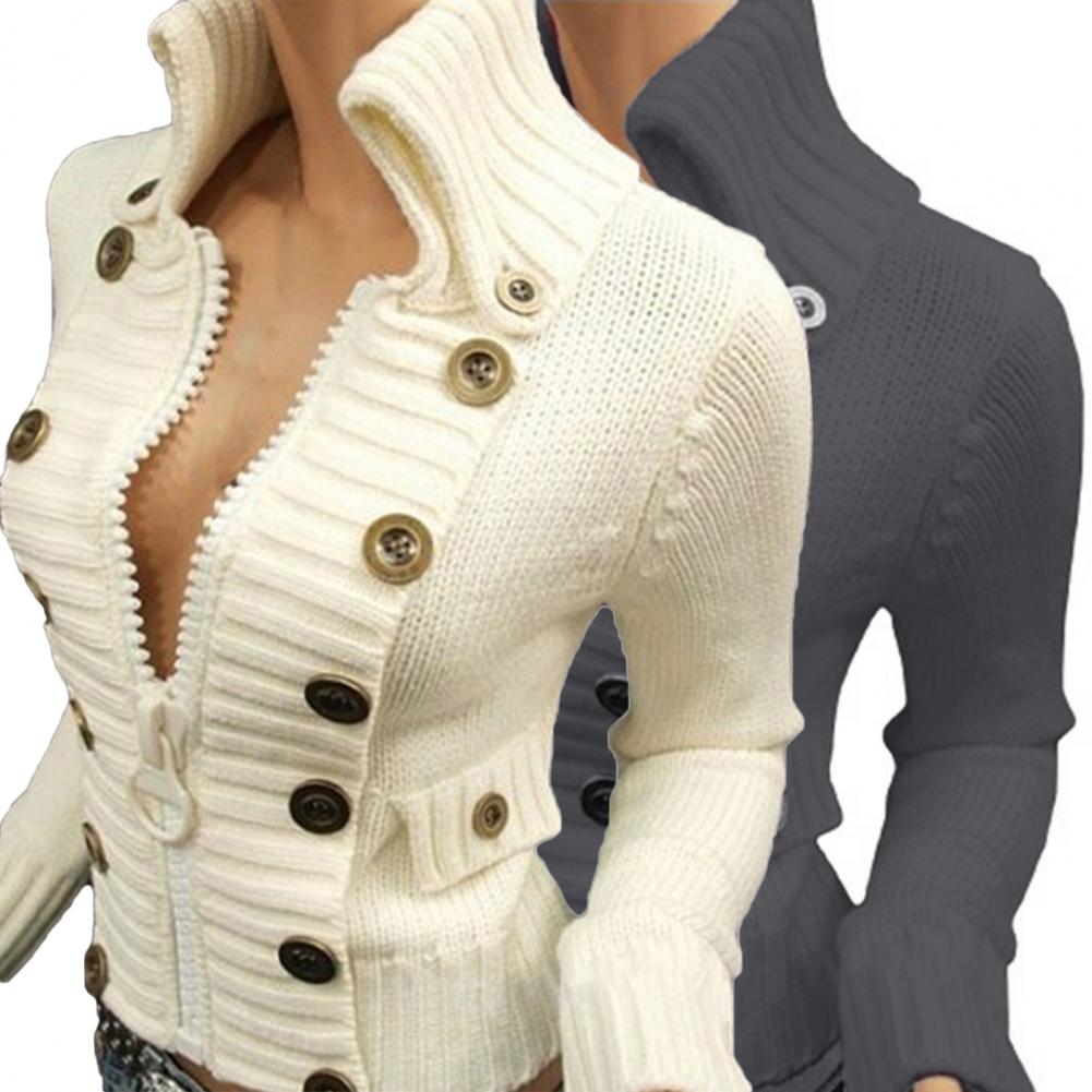 Вязаный свитер с несколькими пуговицами, Пуловеры на молнии, зимний женский вязаный кардиган для дома