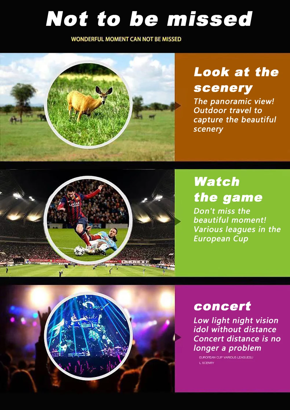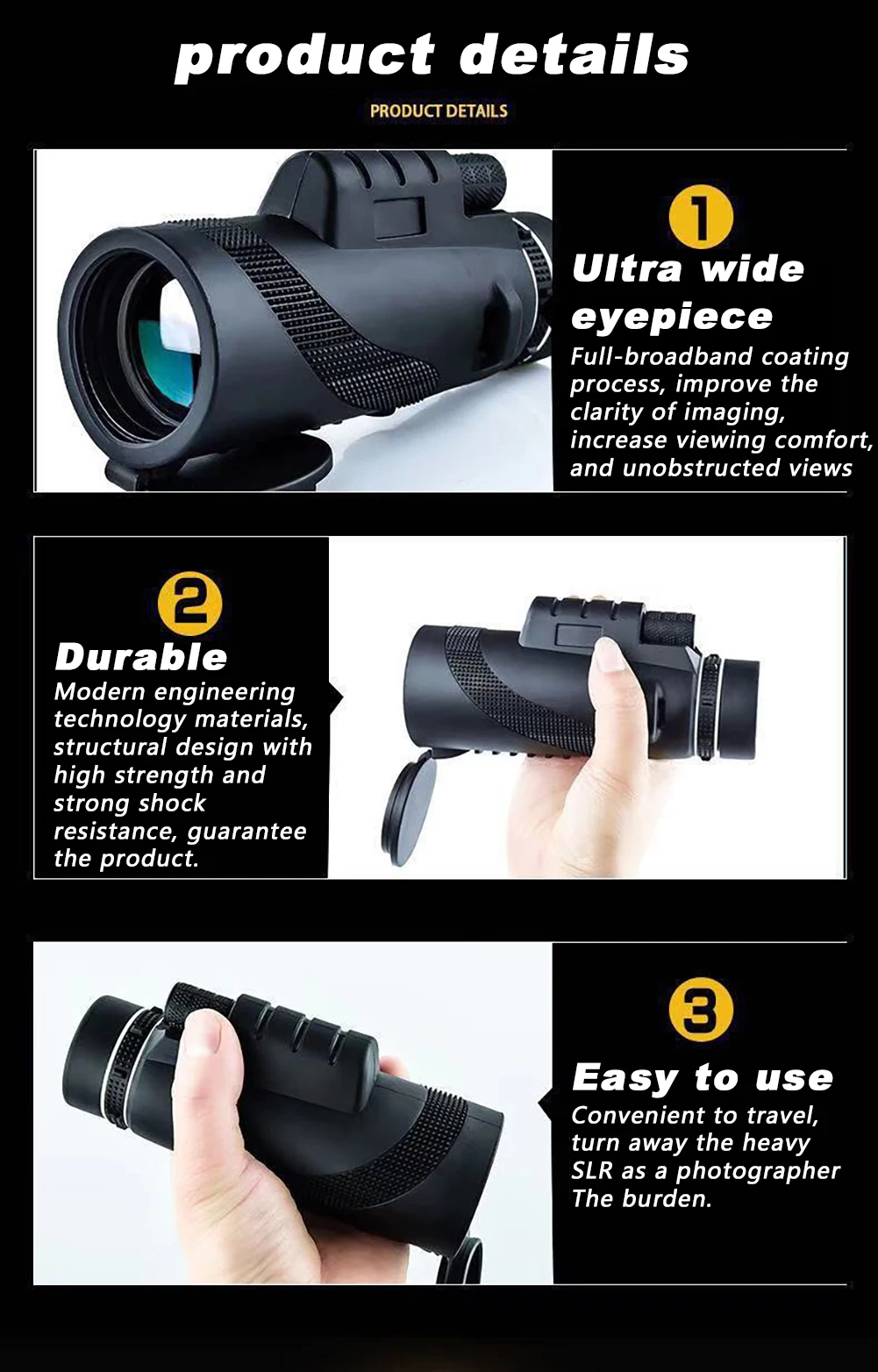 Application: Suitable for travel, vacation, walking, hiking, sports enjoy beautiful nature, view birds, watch sorts, general purpose.