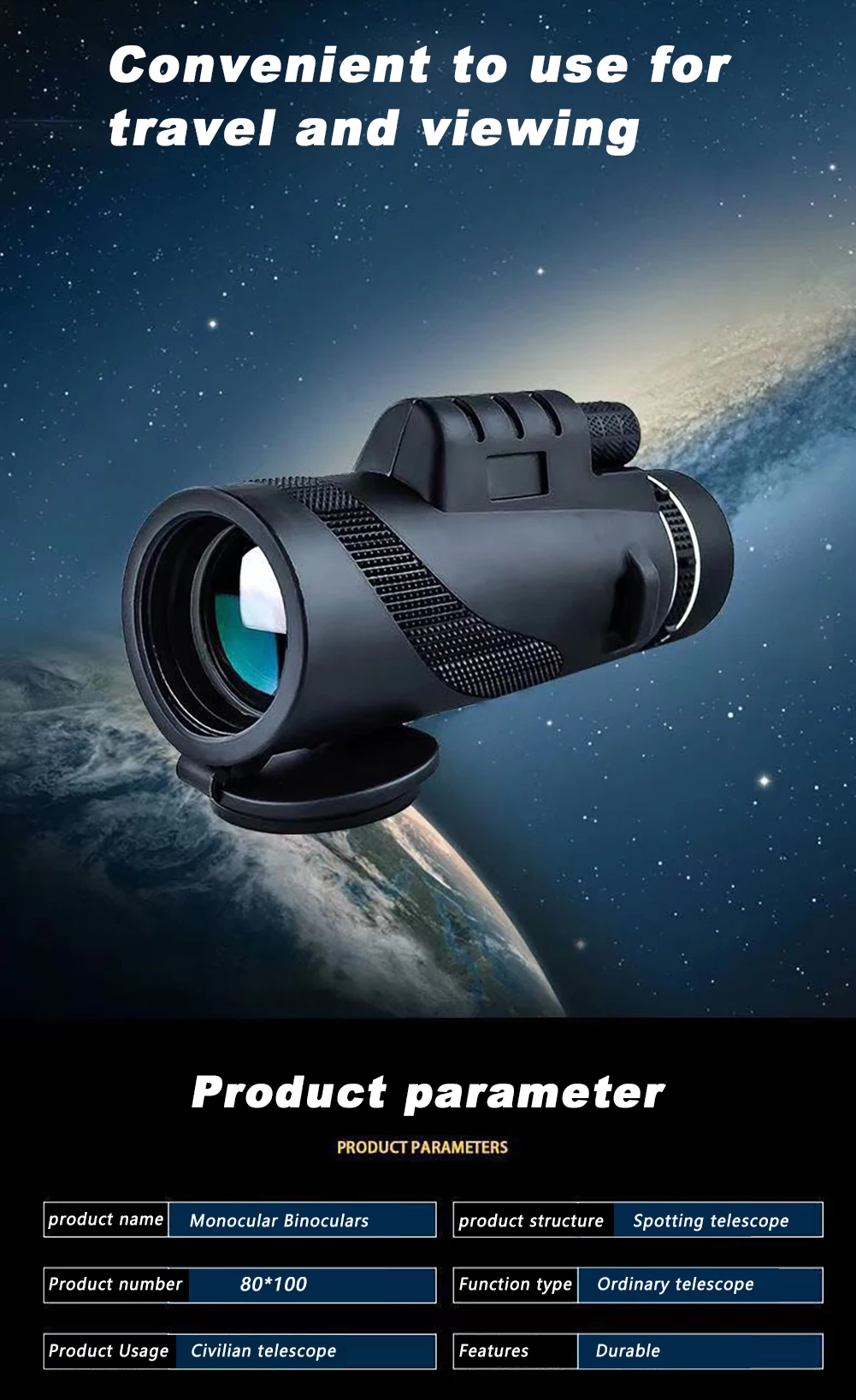 Name: 80x100 Magnification Portable Monocular Telescope