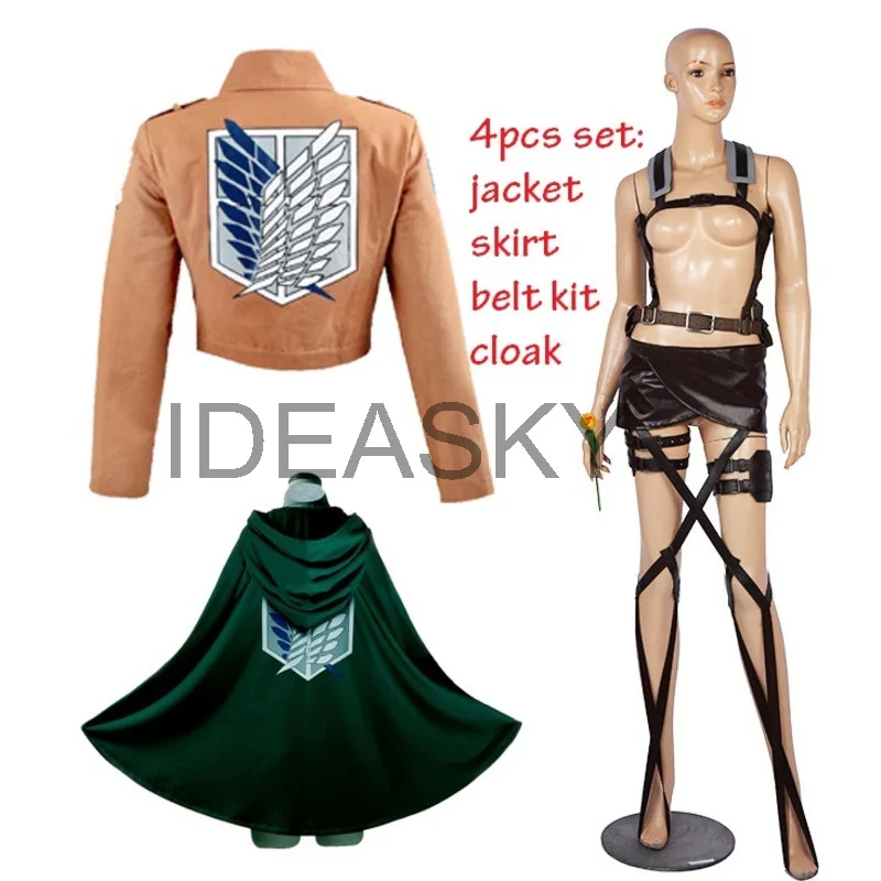 Аниме атака на Титанов levi ackerman Косплей комплект парик рубашка куртка плащ кожаный ремень безопасности фартук юбка Скаутинг плащ Легион