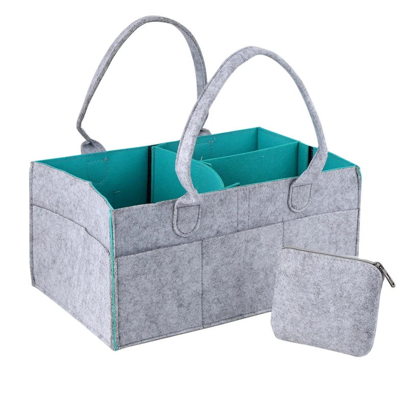 ORGANISE NEWBORN PRODUCTS, INCLUDES A BONUS: Our modern unisex caddy organiser is built with quality felt fabric, soft Press edges and includes removable organising inserts. Store all essentials such as nappies, wipes, burp cloth, lotions, toys, bibs, teethers, medicine, changing pads, breast pump, books and many more, in one place! Plus a BONUS purse to store smaller items.