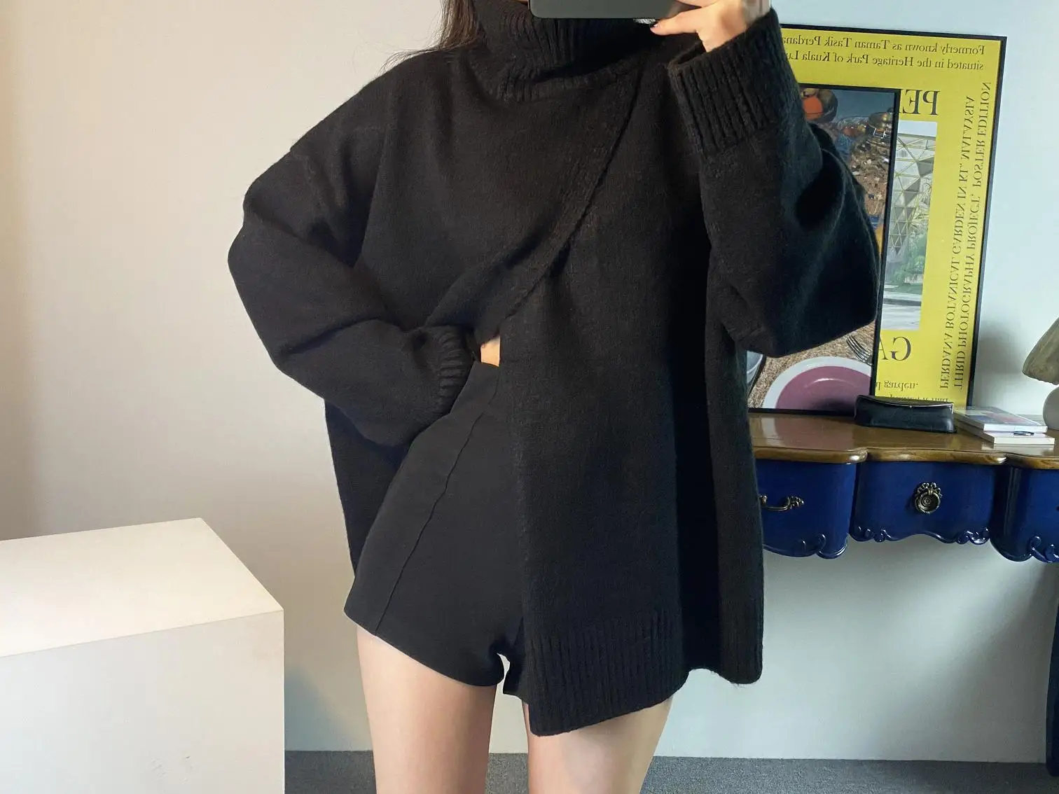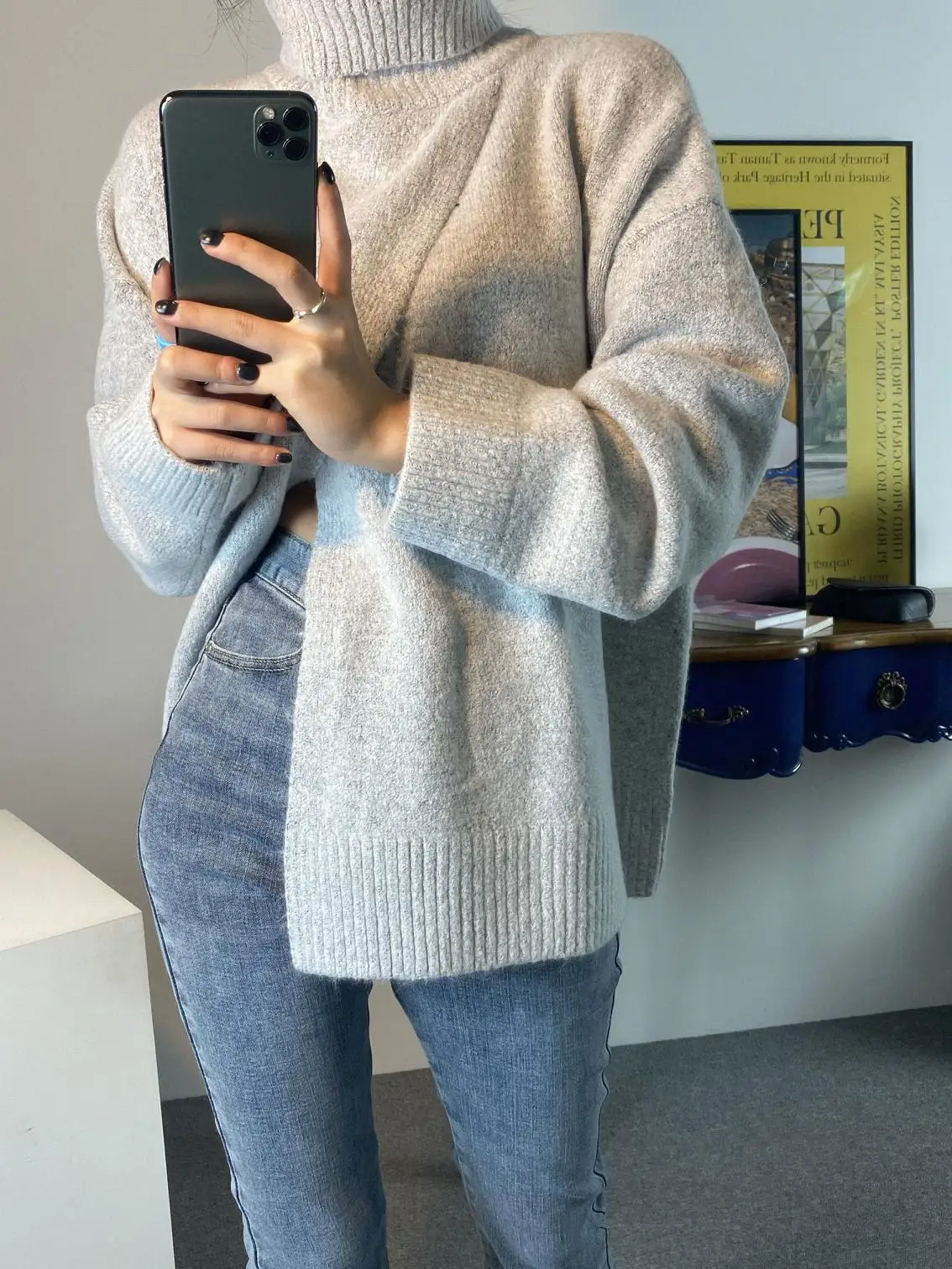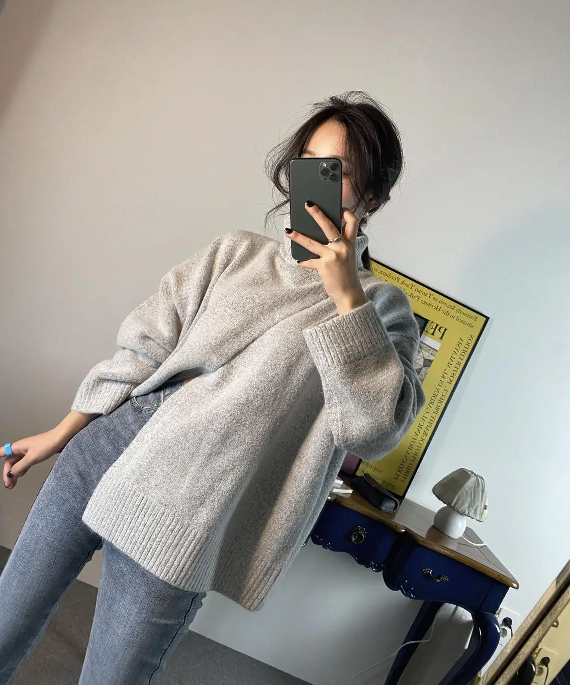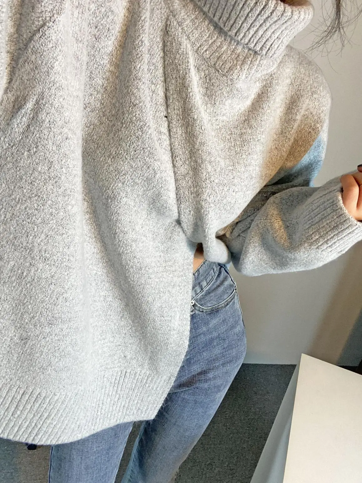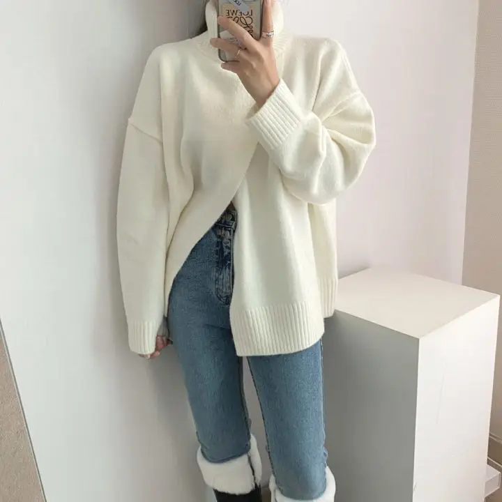 Корейский сплит осенний вязаный свитер для женщин Водолазка джемперы с длинным рукавом винтажные утепленные свободные пуловеры Теплые Элегантные M522