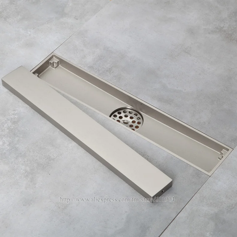 Латунь ванная комната Линейный душ Трап провода фильтр отходов Слив с плиткой вставка серый никель